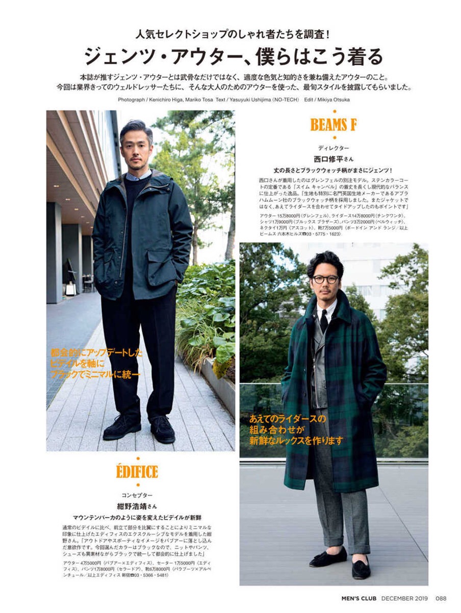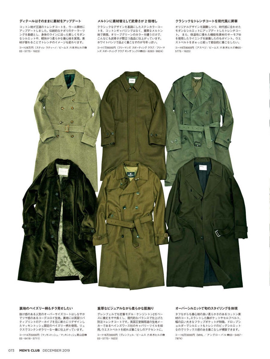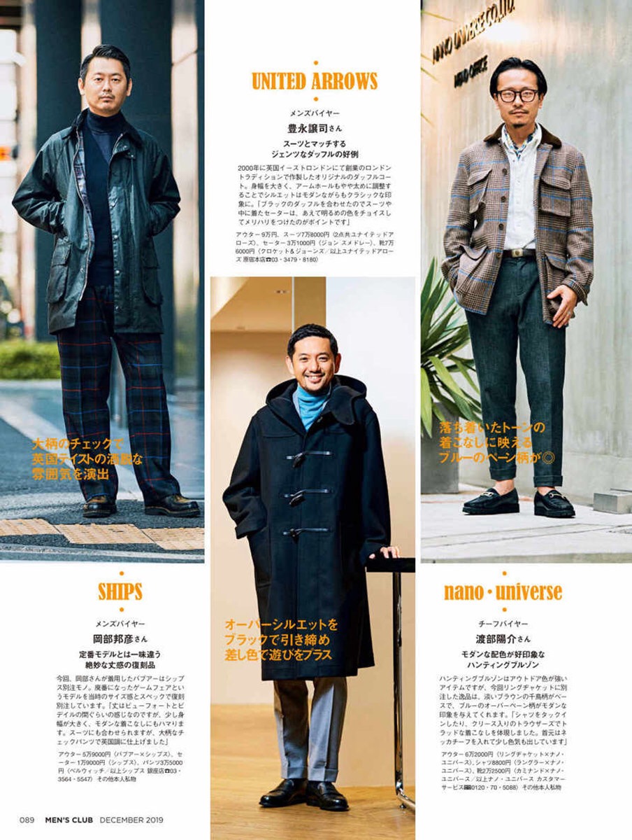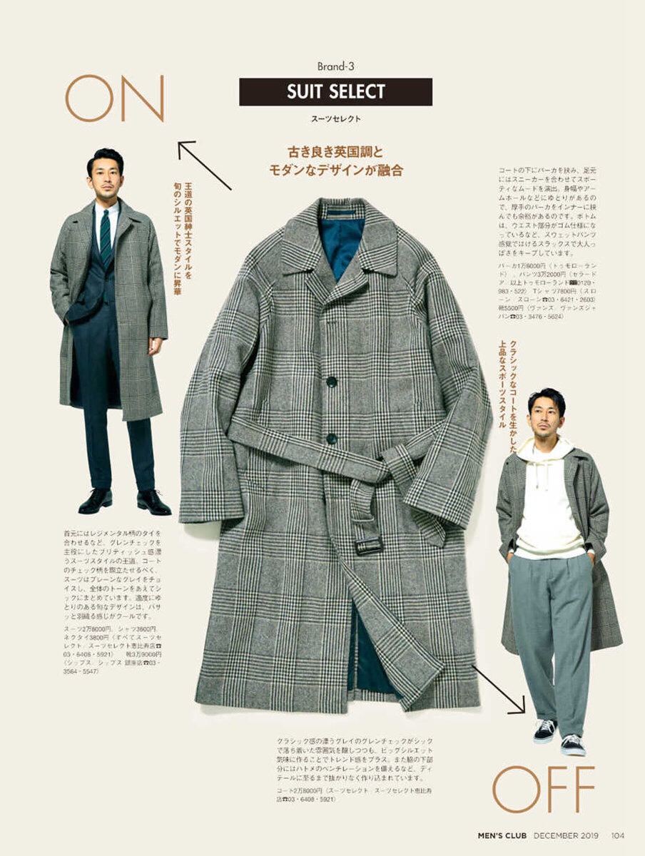 创刊于1954年的MEN’S CLUB,是日本第一本以男性为导向的时尚杂志,至今依然是所谓正统派男性时尚的代表之一。MEN’S CLUB的内容主要提供30岁以上,拥有一定社会地位与消费能力的男性,关于男士西装的流行,穿出低调却又不失都市时尚感的利落,及充满品味的休闲打扮。