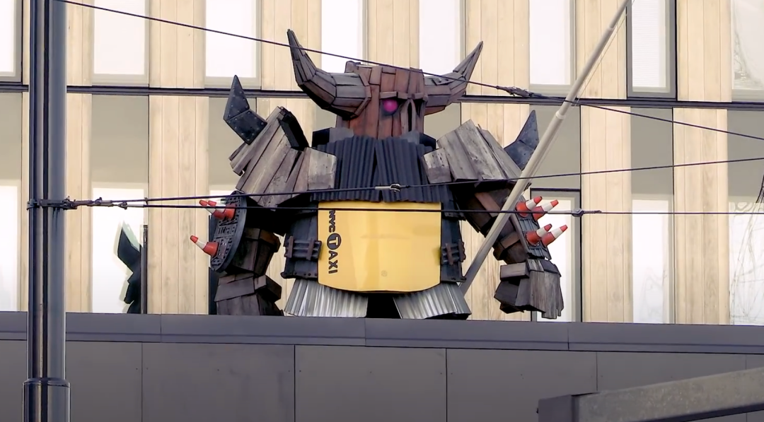 在办公楼的北侧,还放置有《部落冲突》的巨大部落角色代表之一:PEKKA。