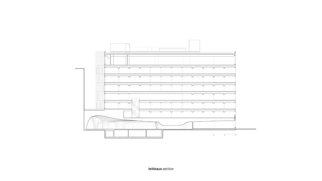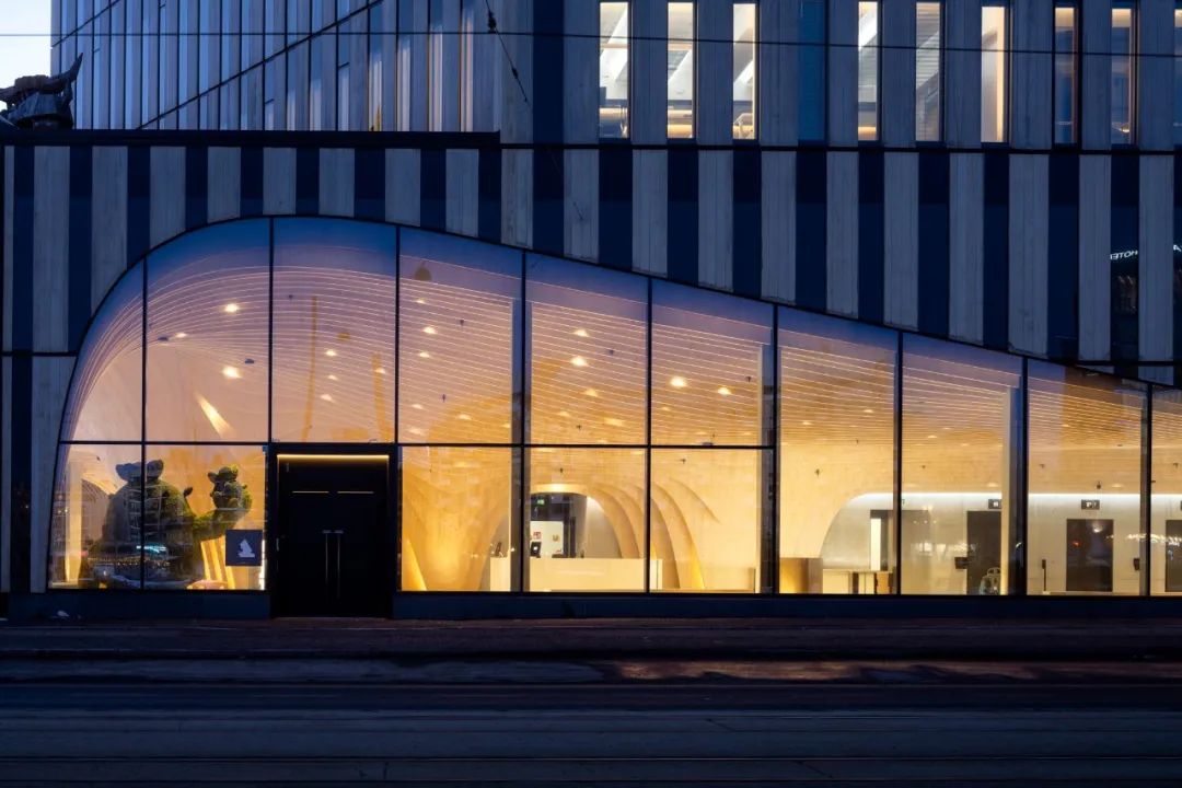 办公楼高至八层,框架和外墙均由实木制成,混凝土仅用于两个交通核心。
