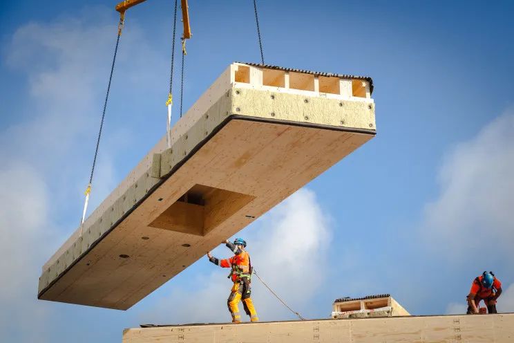 由于建筑体量巨大,大部分部件是在预制工厂进行产品制作与安装,再送至Wood City组建。