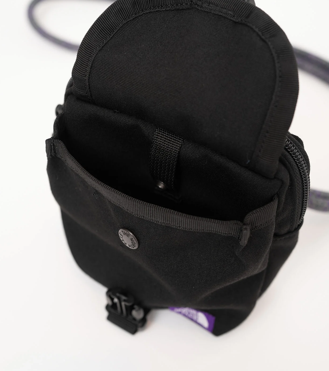 THE NORTH FACE PURPLE LABEL 这款包选用了意大利的 Tempotest 面料进行打造,具有着非常好的防水性能,日常主要用于制作帐篷和户外躺椅等。此外在细节的绳子部分,还特别融入了紫标特别的紫色。包袋内部也增加了防冲撞的网状内垫,日常能够非常方便的去储存相机和手机等各类小物。