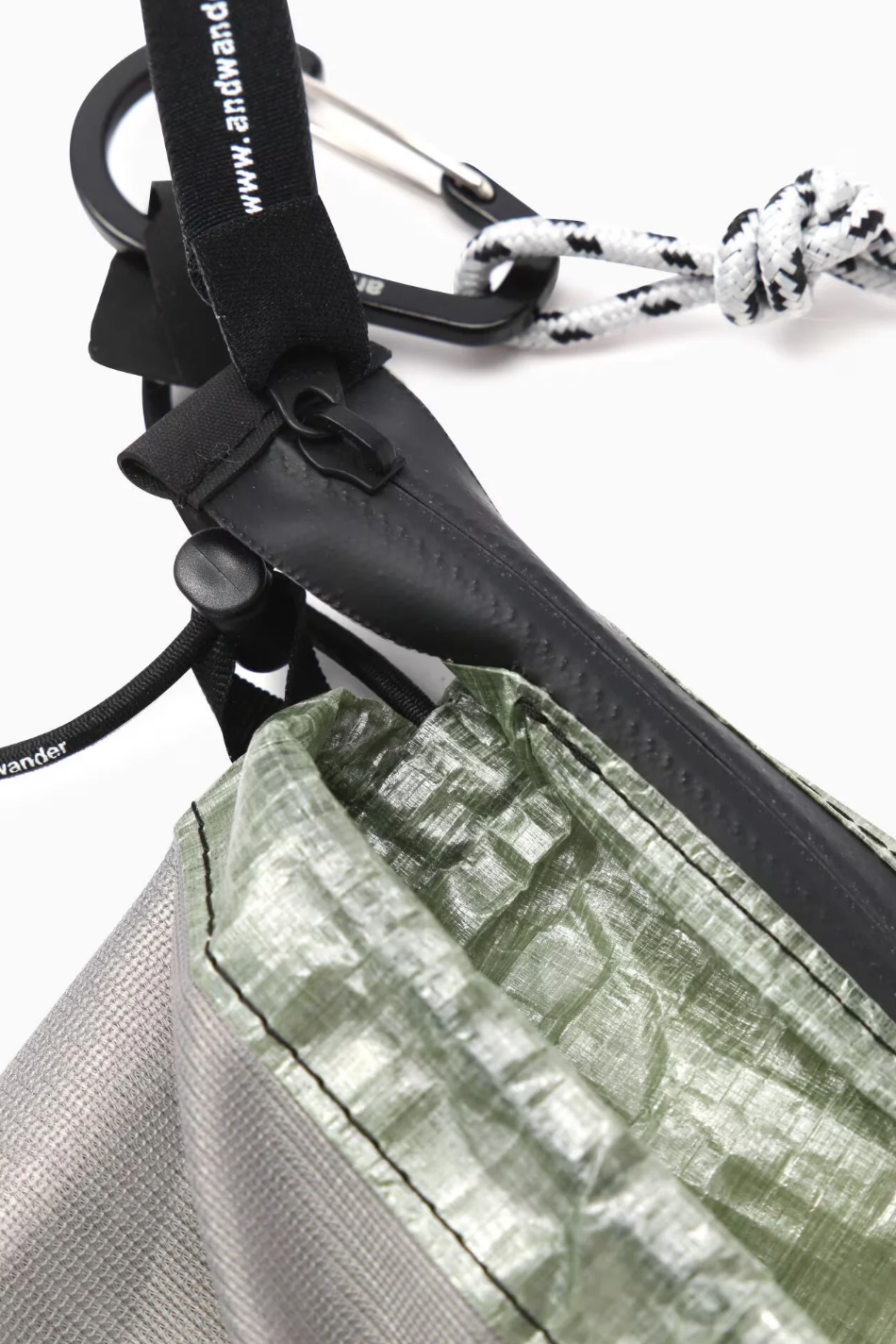 and wander 选用了 Dyneema 来打造这款包袋,通常这类材料更多用于赛艇和帆船等需要保证高性能的设备中,并且拥有着极轻地质感,以及高防水和防撕裂的特性。因为更为注重轻量化,所以平时使用尽量要避免装入尖锐的物品。整个包袋的容量为1.5L,日常小物基本都能装入。