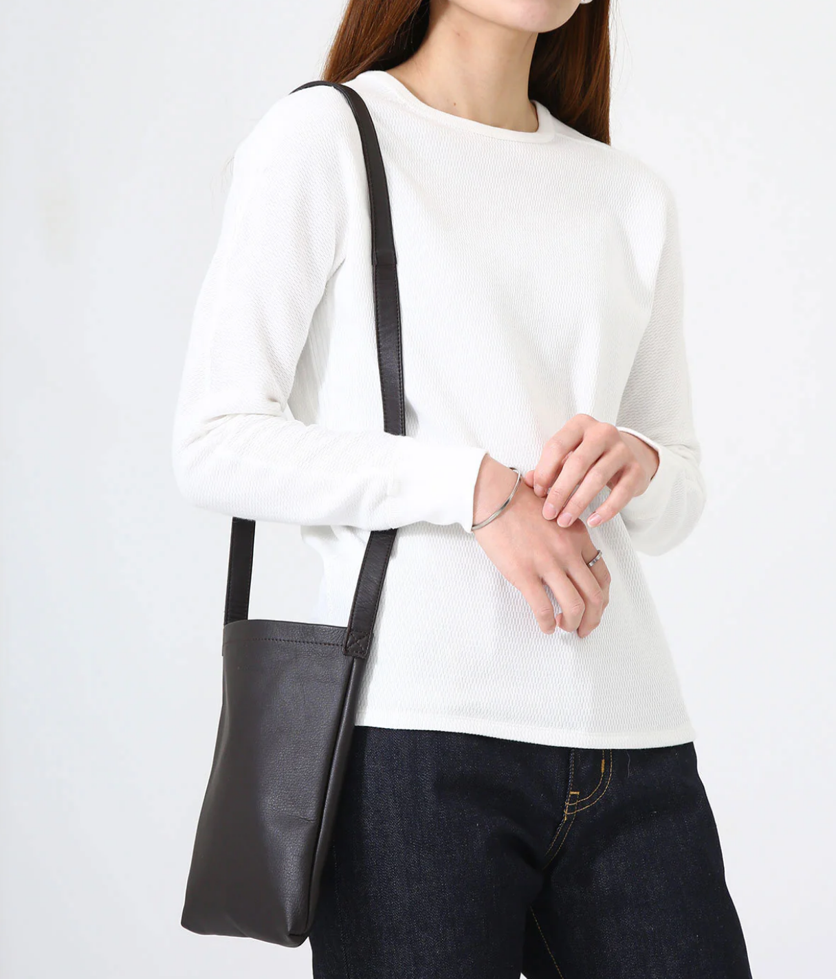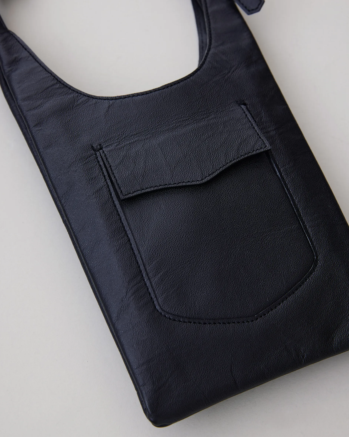 Hender Scheme 这款包采用了无衬里的设计,因此重量很轻。整体设计非常极简,并且刻意去掉了调节长度的扣环。质感方面因为经过特殊的处理,所以皮革非常柔软且舒适,并且拥有着细腻的光泽感。