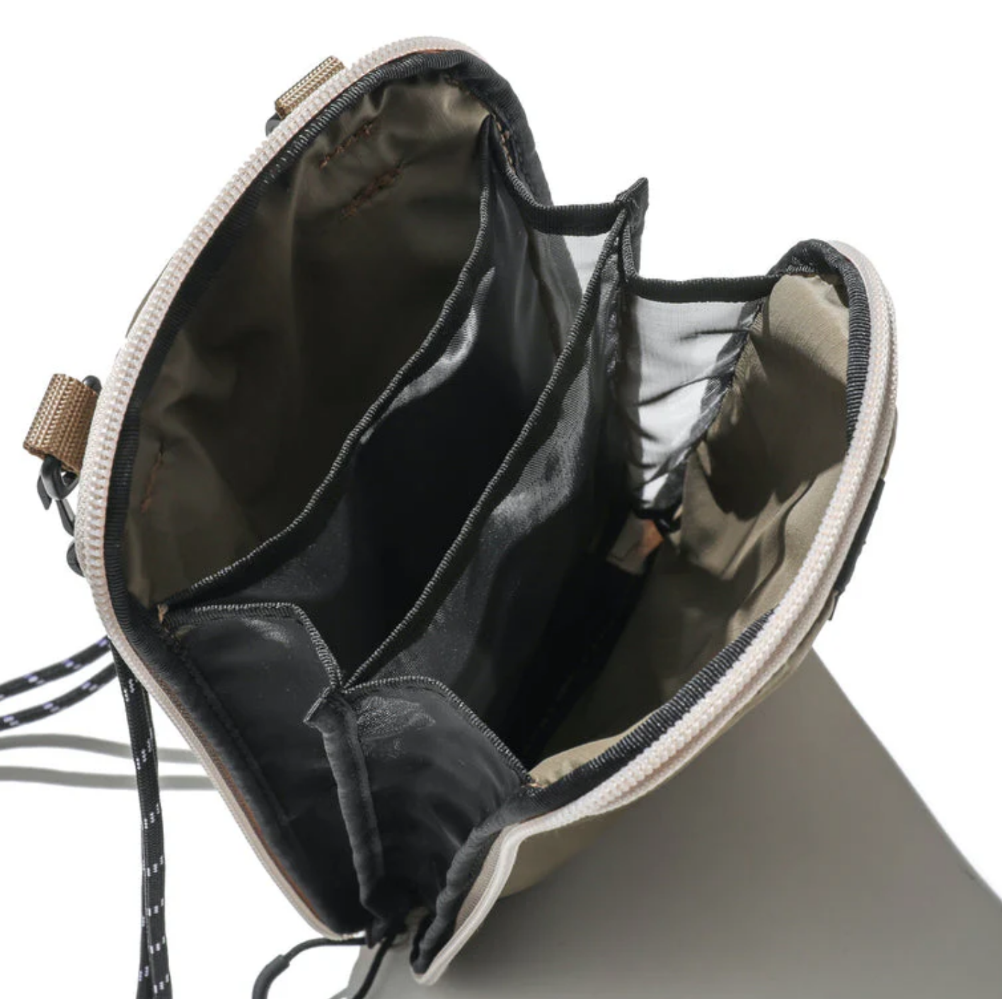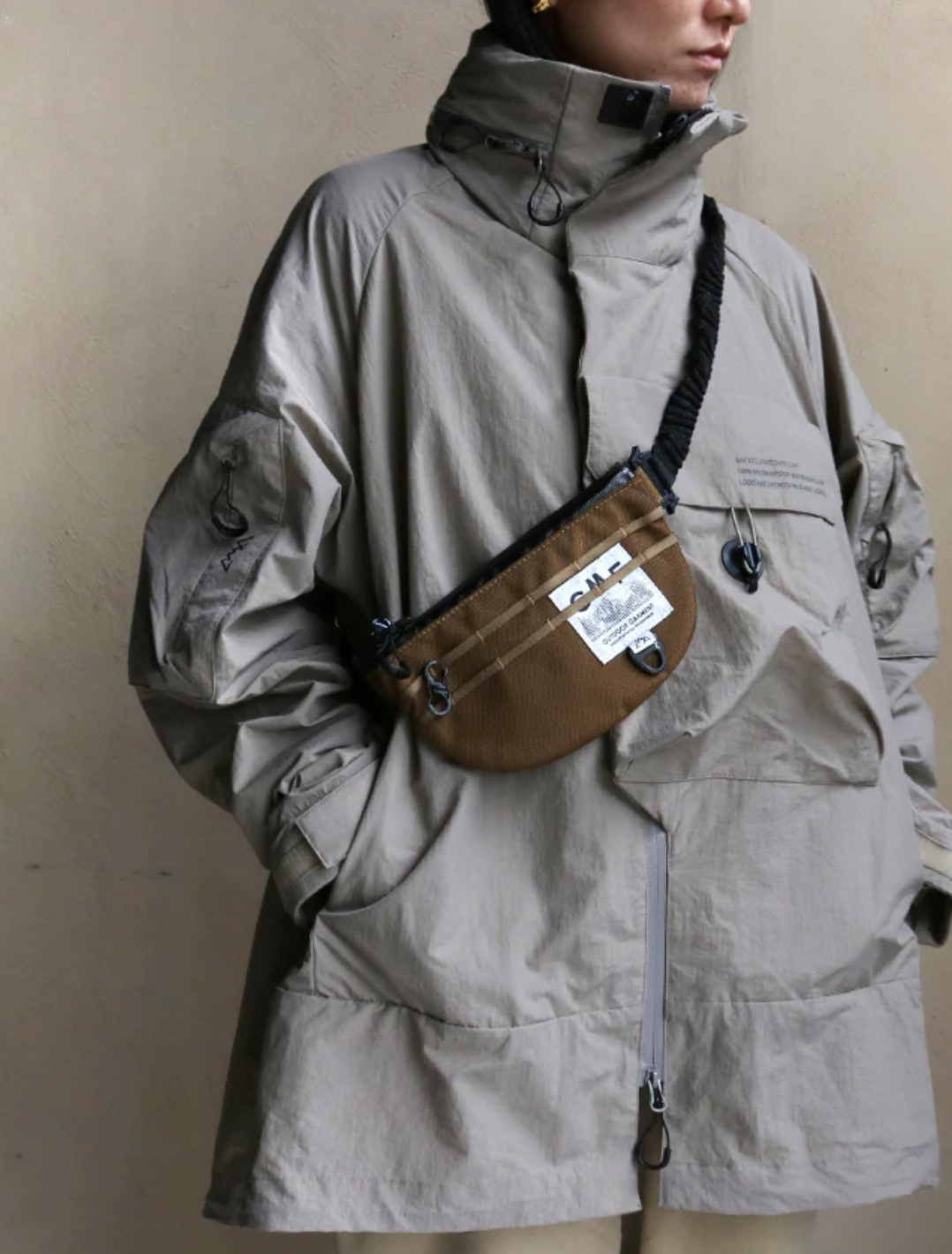 CMF Outdoor Garment 这款包袋配备了多个挂钩细节,可以去悬挂不同的物品。背带部分也选用了弹力材质,并且拥有着折叠的风格质感。内部为两个分层结构,能够将贵重和日常物品进行分开存放。