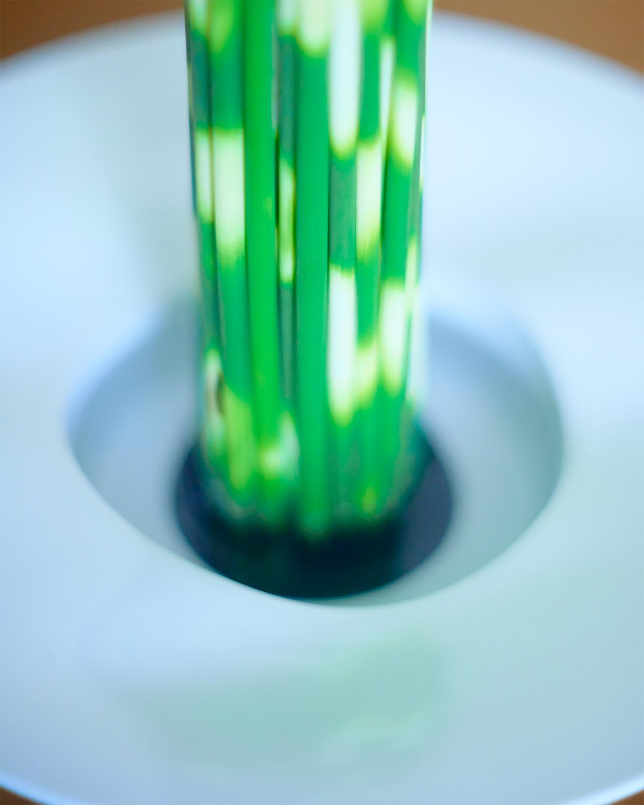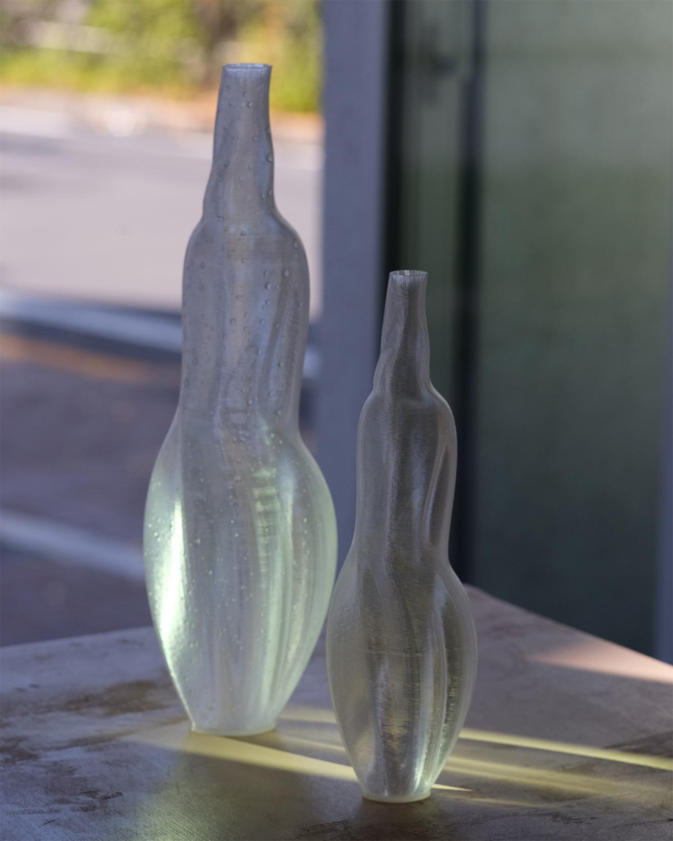ARGOT STUDIO Éson Vessel 的设计灵感源自于法国80年代的手工玻璃吹制器皿,同时通过现代工艺和审美进行了重塑。因为整体制作采用了3D打印技术,以及可回收的生物材质打造而成。这种材料由玉米和甘蔗淀粉进行合成,埋入土中后还可实现天然降解,不仅美观而且降低了对于环境的危害。