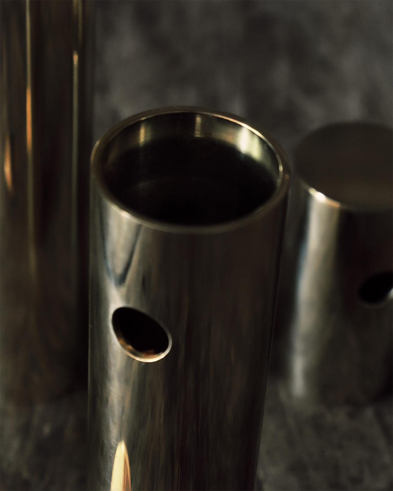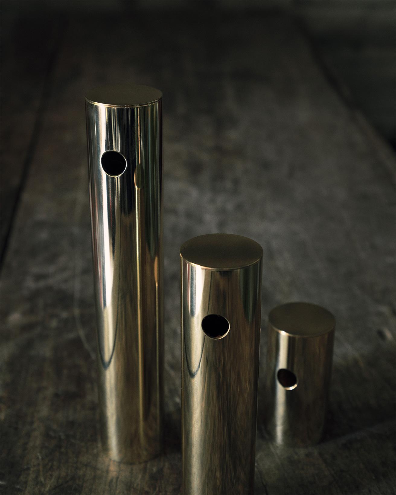 TAK. Studio 的这款花瓶看似是一个哨子,其实它的灵感来自于啄木鸟的树冠,因此得名为啄木鸟树。整体采用了黄铜材质进行打造,造型看似简单但镜面抛光工艺还是要花费一些功夫,放在家中也有着很强的存在感。日常可以单独选购,或者购买一套不同的尺寸进行组合使用。