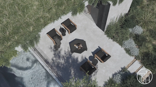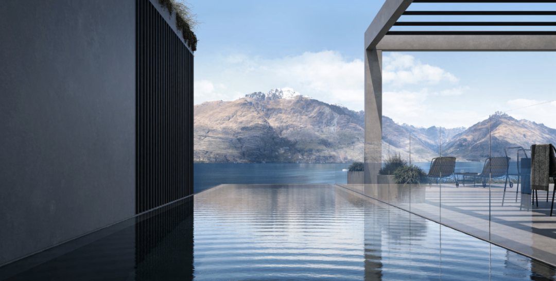 卧室与起居室之间的户外泳池,同样拥有绝佳的景色,身处其中更有种旅游度假的氛围▽