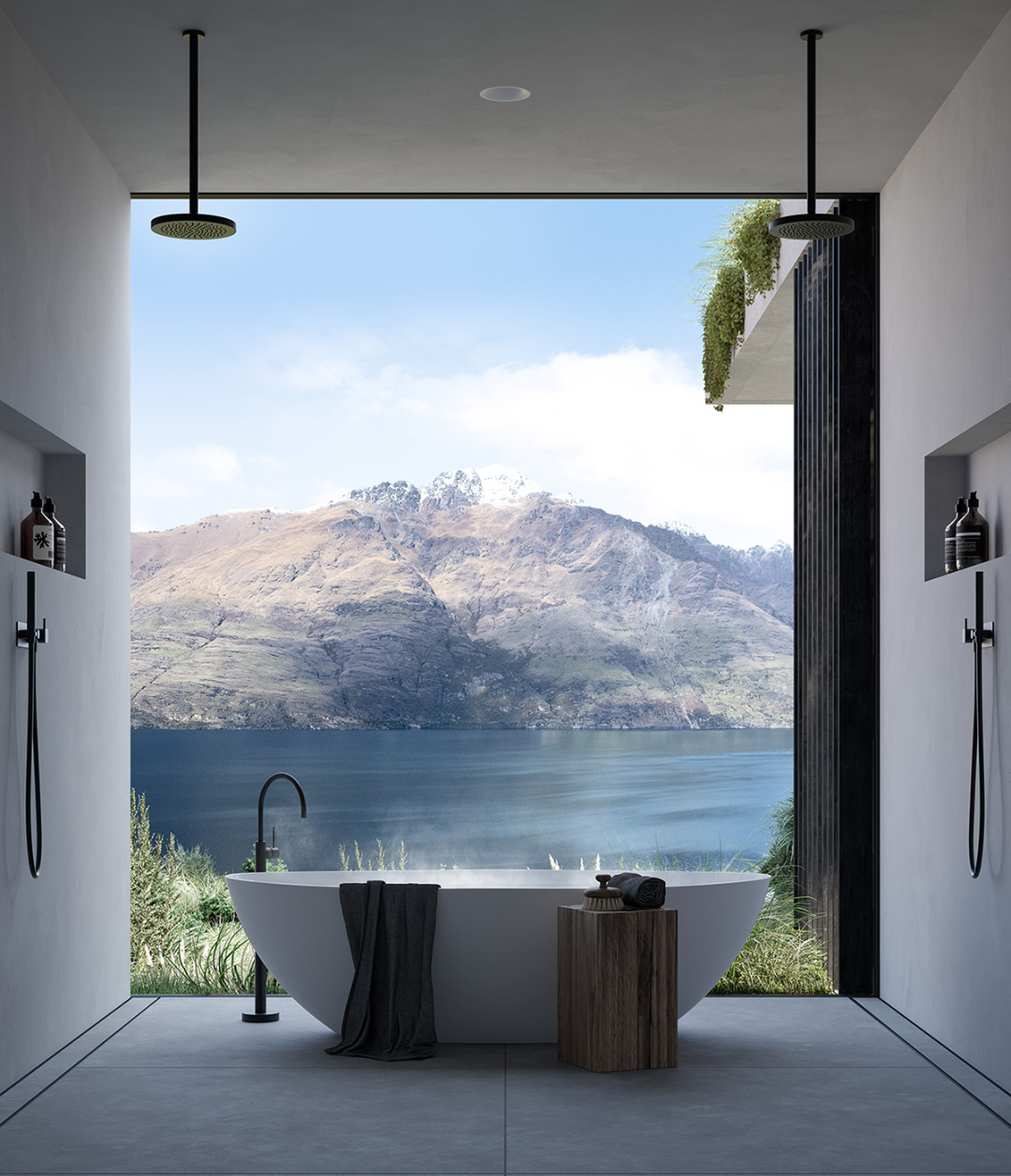 内嵌在露台的浴缸,能近距离的与自然接触,更是一个夜晚观星的理想场所。