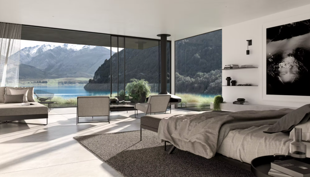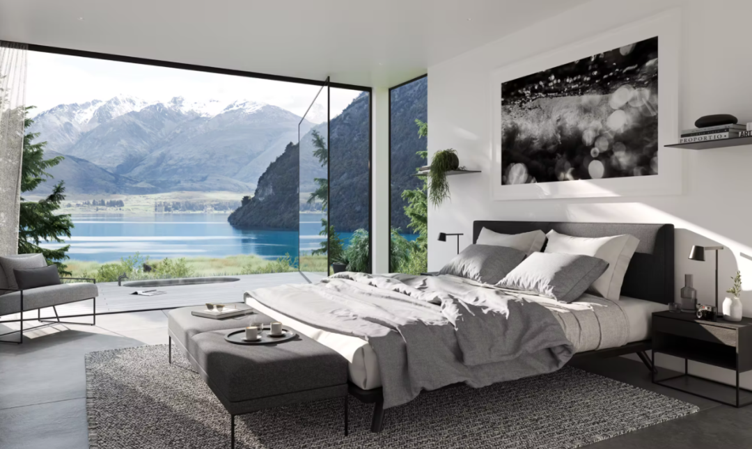 二层设有 3 间卧室套房,不管在哪个房间都能无遮挡的眺望远处瓦卡蒂普湖清澈湛蓝的湖水与塞西尔峰的山脉。