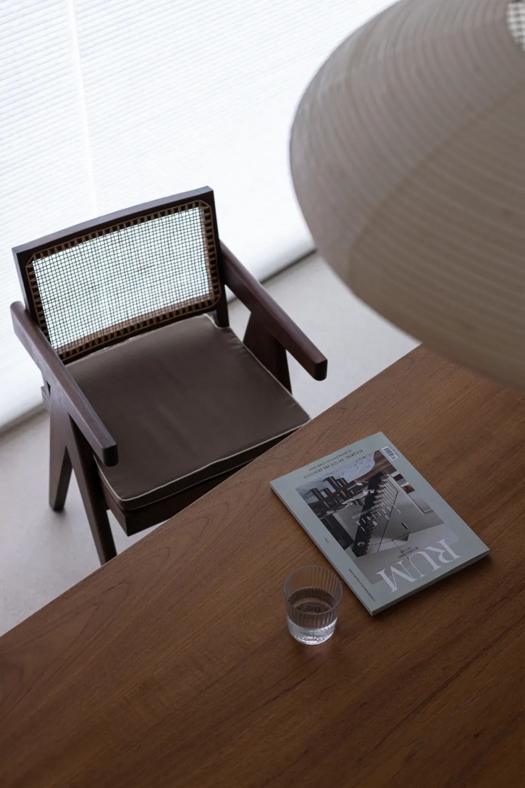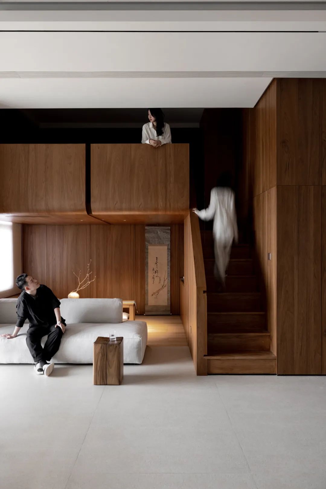 木卡工作室:这一答案也可以衔接上面对空间风格的回复,相比明确的空间风格,我们更愿意强调空间中材质使用上的绝对质朴甚至粗粝以及空间情绪上克制而平和的表达,刚好柚木可以为本次住宅呈现出这样的效果。