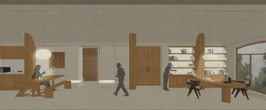 2.压低使用界面与设置阁楼,增加公共区域的视觉层次与互动性;