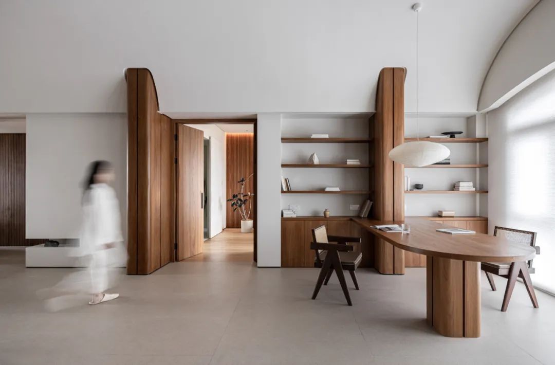 一对在欧洲深造多年的夫妇,归国后便将这一想法落地到了杭州。对他们而言,理想中的家能保留足够的空间感与“慢”氛围,合于杭州生活的闲适节奏,同时也能凝练地表达出这座城市的美学内核,为此他们找到木卡设计团队。