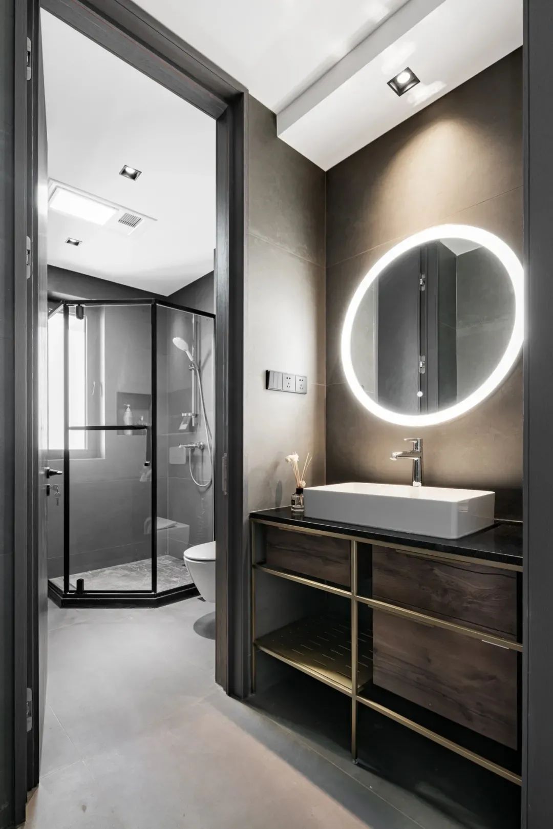 公共区卫生间位于餐厅一侧,干湿分离设计便于家人日常洗漱,人性化考量丝丝浸入细节里。