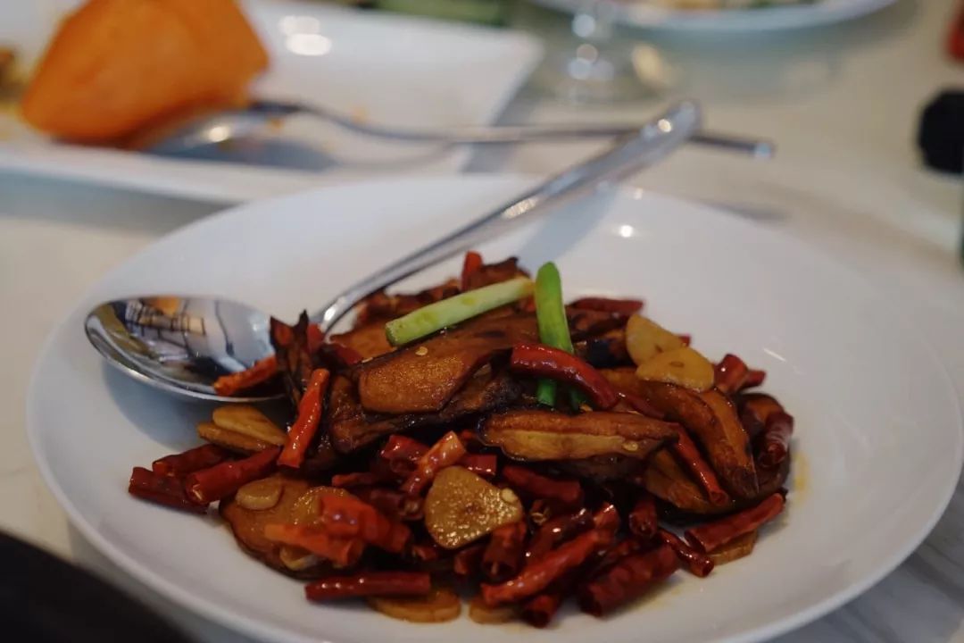 富贵脆皮鸡不算惊艳,皮炸得够脆,但油挺厚显得有点肥腻。石锅花椒牛小排,调味倒是不错,但牛肉可以更好一些,我吃到的两块肉筋稍微有点咬不动了。