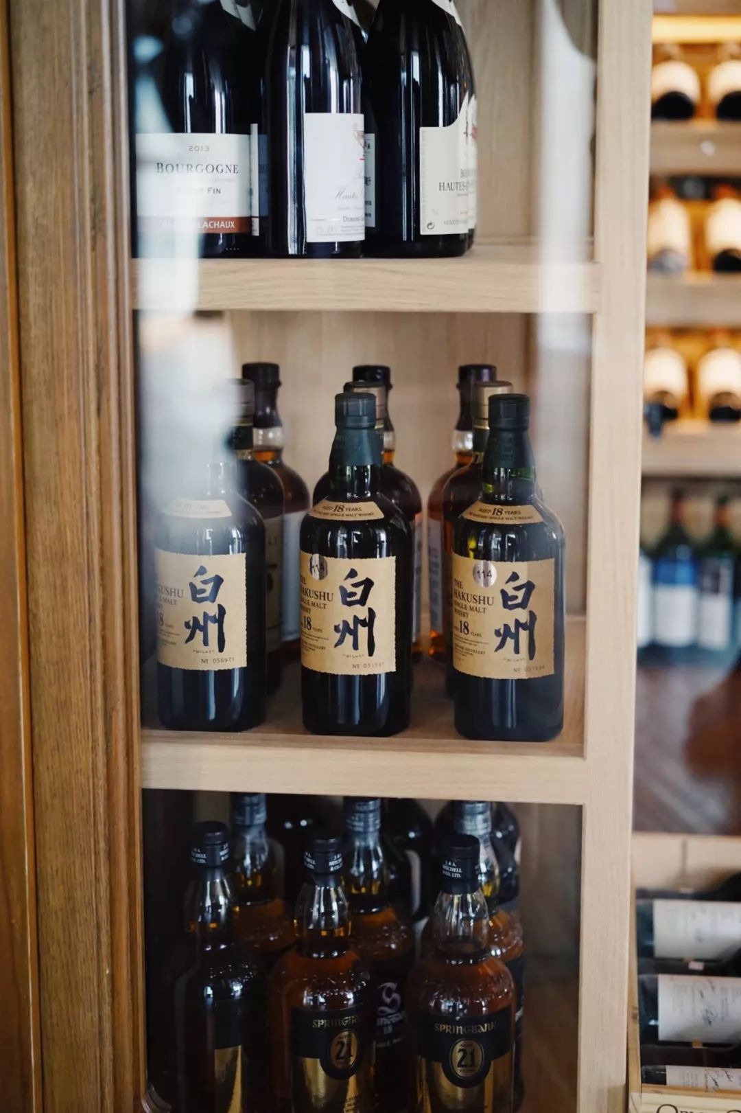 威士忌不算多,共7款——泰斯卡酒厂限量版本,云顶18年、21年,百富30年,白州18年,山崎18年,余市20年。虽然只有寥寥几款,但都很适配这里的菜品。