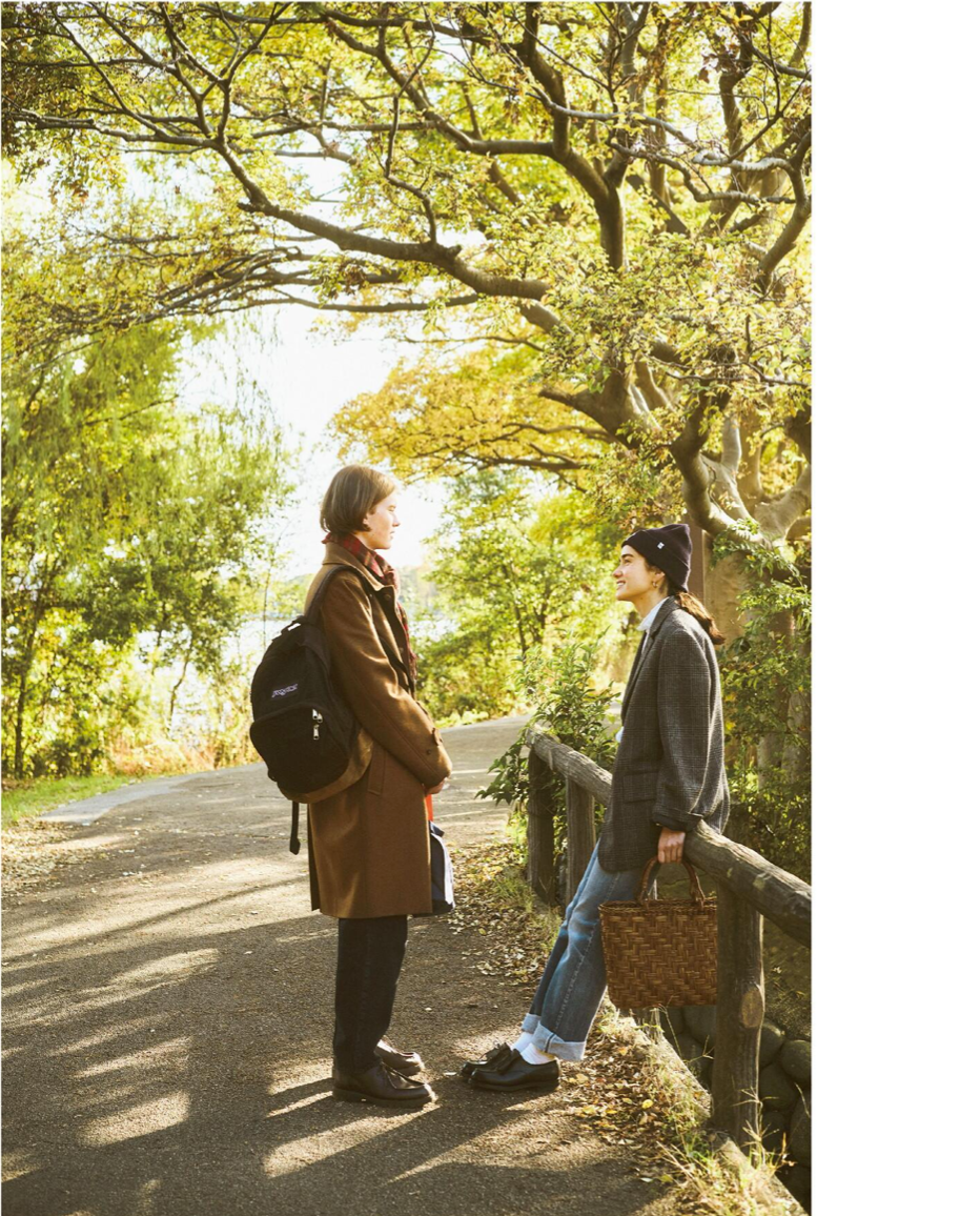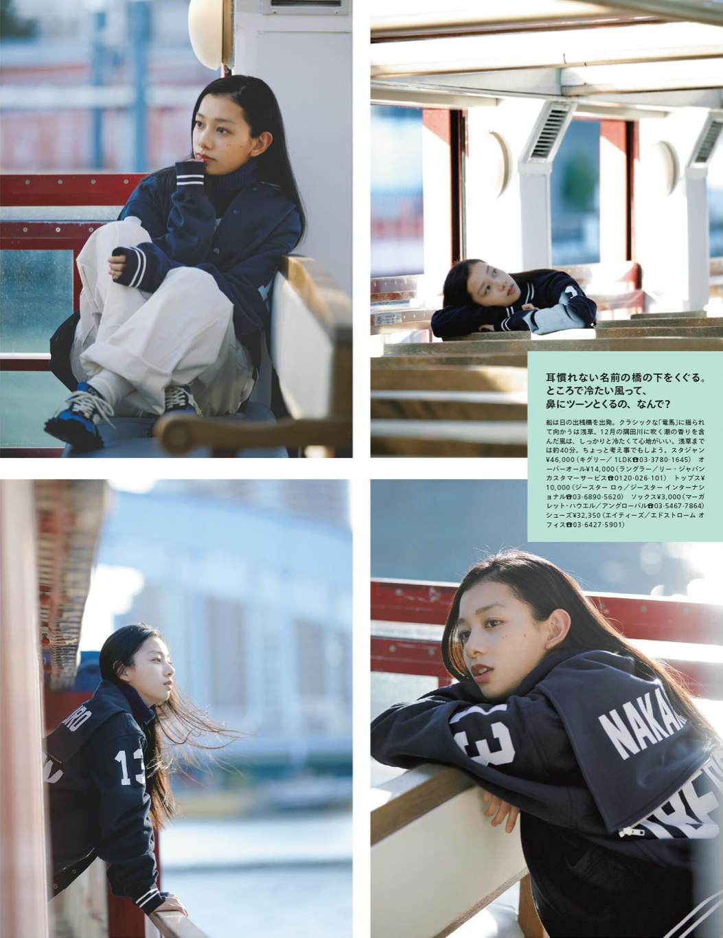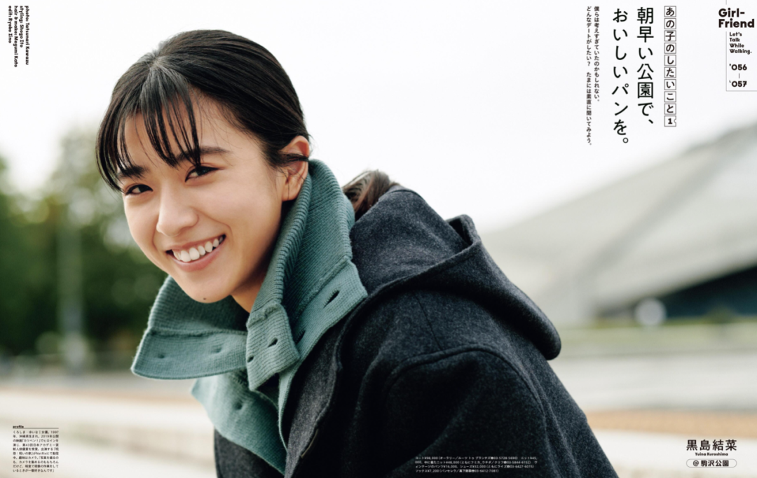每年1月,就是常规的「女生」刊,以女生相关话题展开,也是情侣穿搭的高产月刊。这一组模特选角和拍摄都非常有爱,虽然大家在看脸,但图2的水手领运动夹克还是提一下,跟棒球夹克区别就在于「水手领」,拉上可以当帽子,躺开平垂后背,增加装饰性,这件夹克在 1LDK 有售(2800元)。