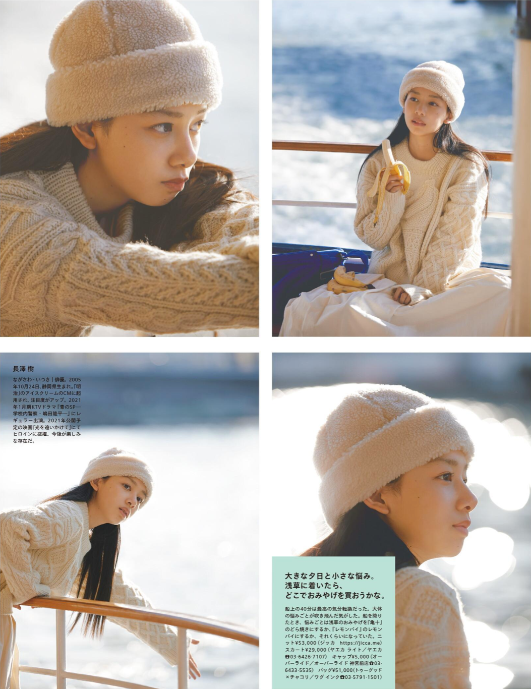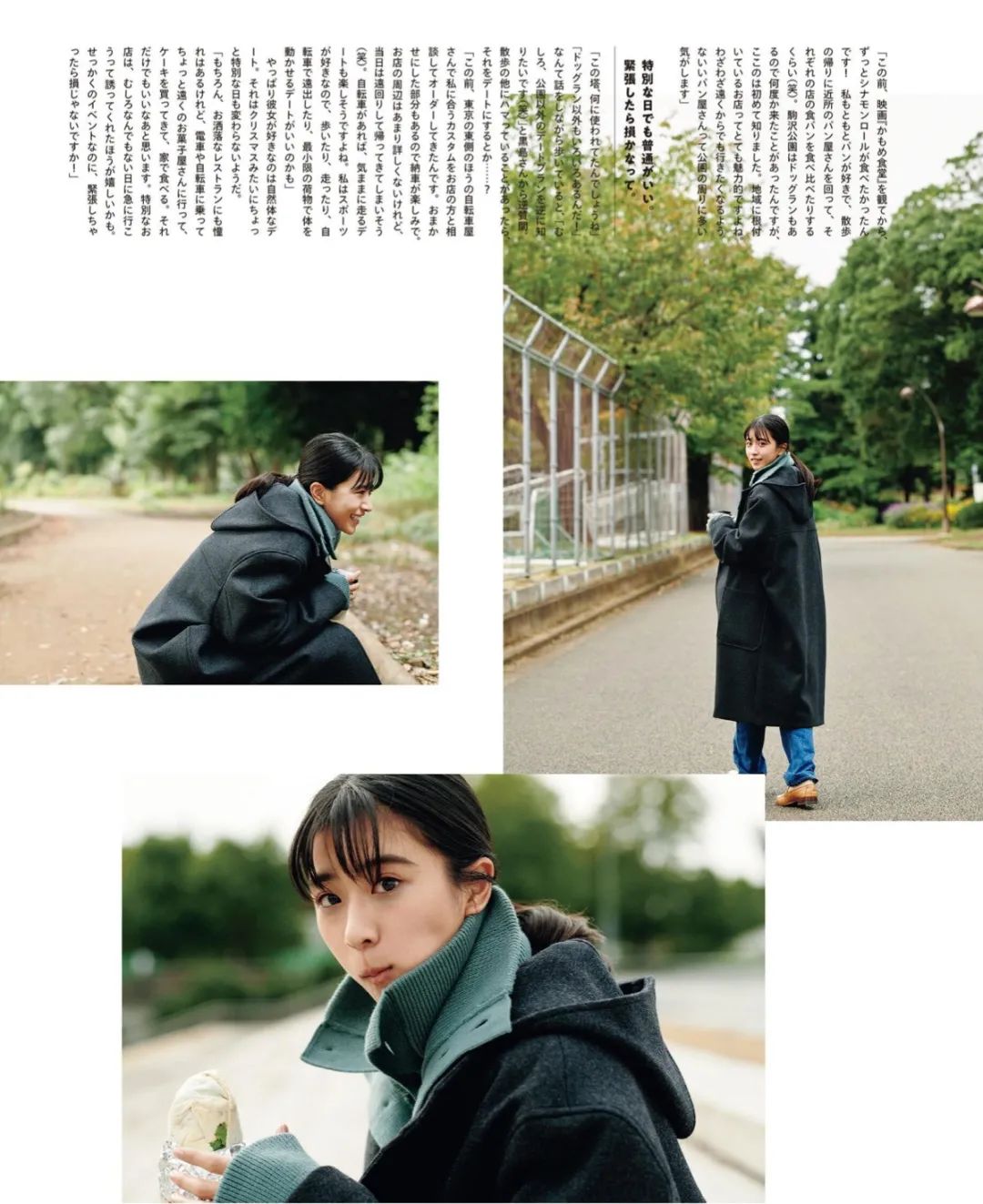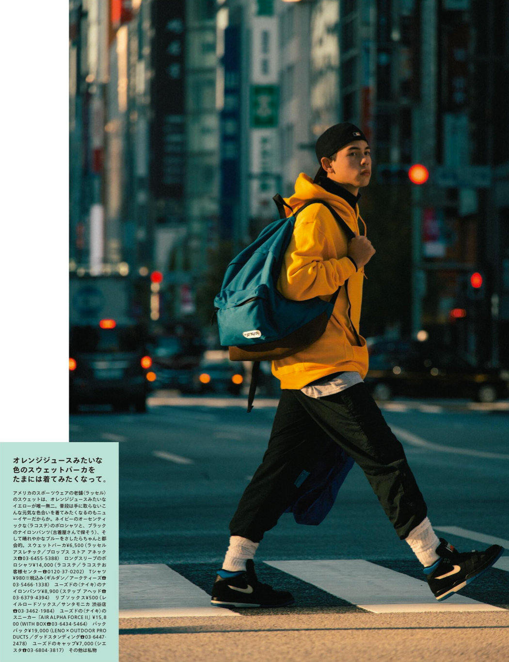 每年1月,就是常规的「女生」刊,以女生相关话题展开,也是情侣穿搭的高产月刊。这一组模特选角和拍摄都非常有爱,虽然大家在看脸,但图2的水手领运动夹克还是提一下,跟棒球夹克区别就在于「水手领」,拉上可以当帽子,躺开平垂后背,增加装饰性,这件夹克在 1LDK 有售(2800元)。