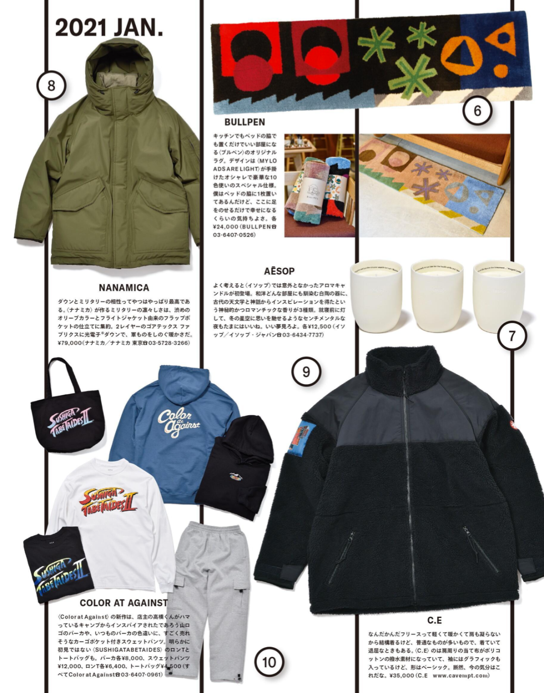 在单品推荐板块,No.8 nanamica® 的光电子羽绒服,折扣季的时候,价格还是可以有;No.9 C.E.摇粒绒系列一直设计在线,可以作为优选项。