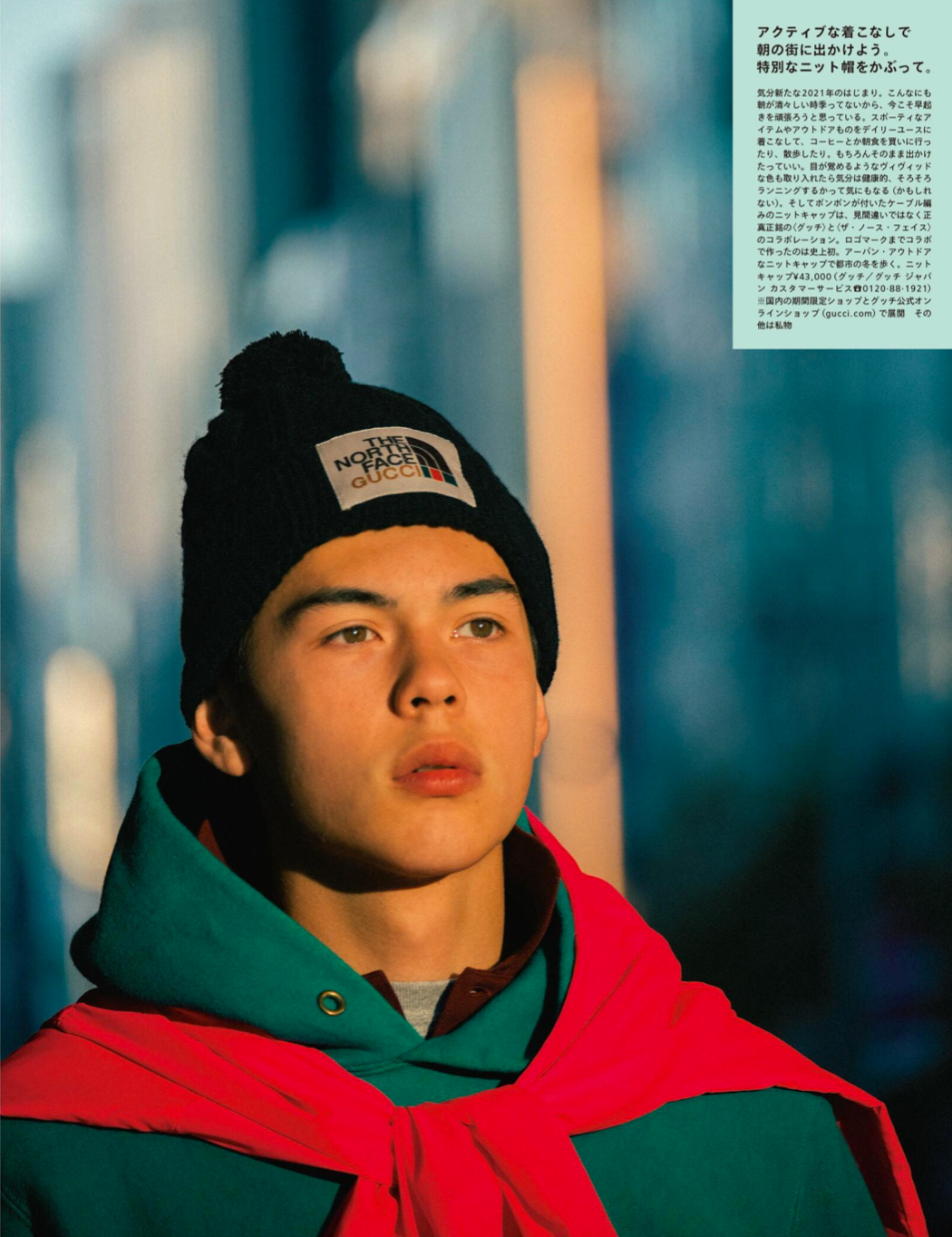 到了2月,就是常规「全球街拍」刊,以世界各地的街拍(投稿-筛选-登刊)展开相关话题。下图4个造型,很有 City Boy 的调性,高领以及白袜的处理随处可见,Gucci x The North Face 联名也是提前上身。