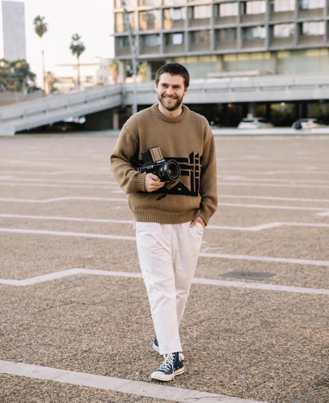 图1( Adish 针织衫 + Nili Lotan长裤 + Converse 高帮帆布鞋),图2( Adish 帽衫 +Junya Watanabe 长裤 + Air Jordan 1),图3( The North Face x JunyaWatanabe 夹克 + Polo Sport 长裤+ Salomon 鞋)。