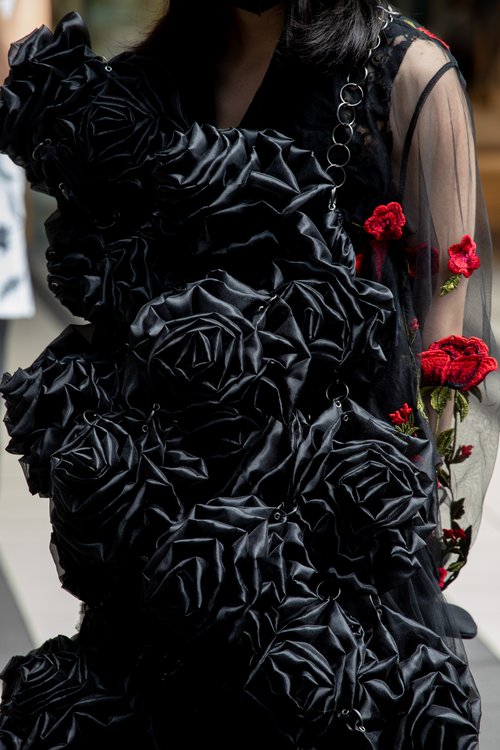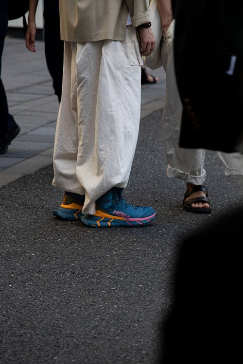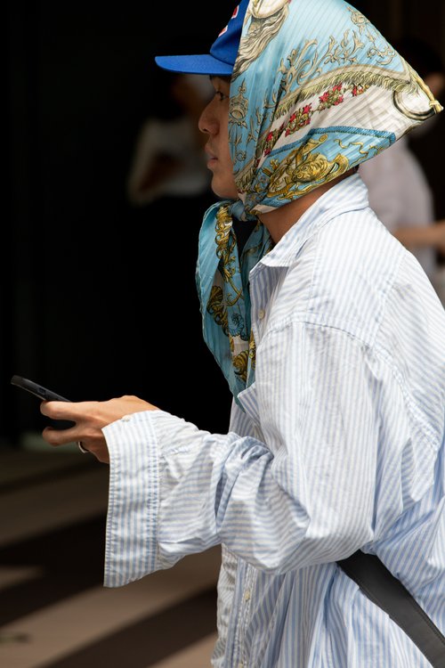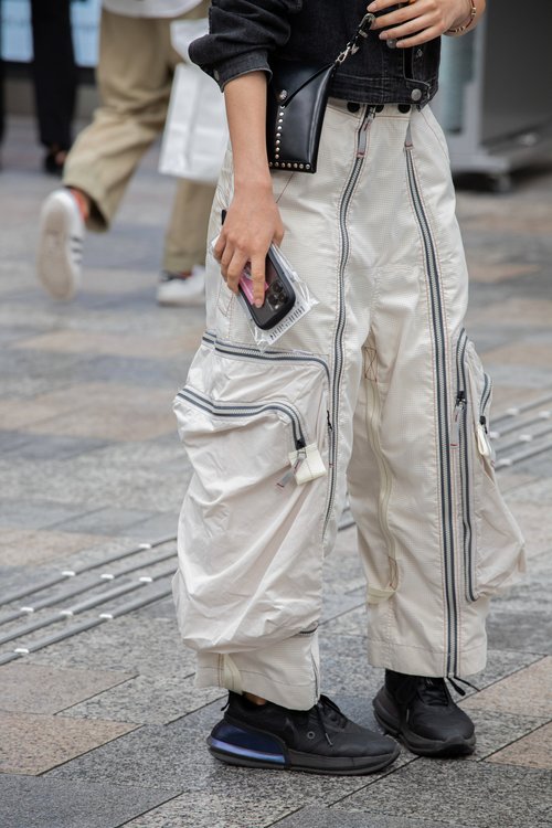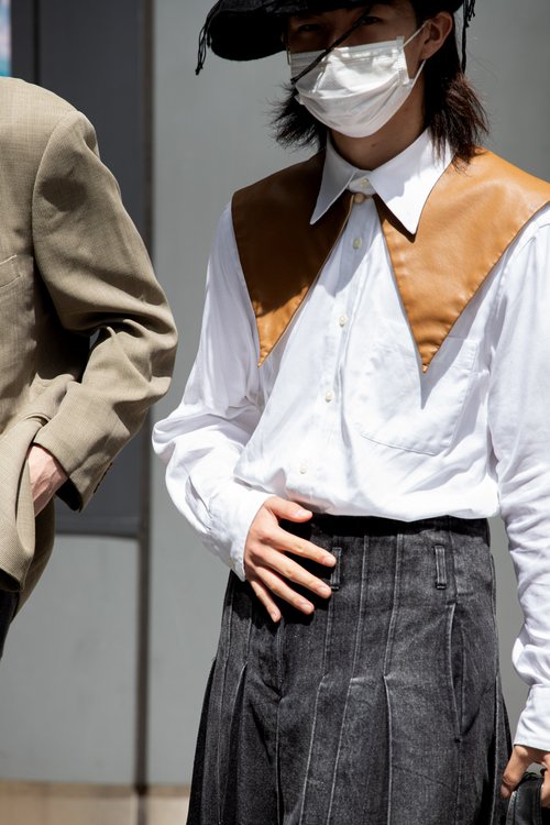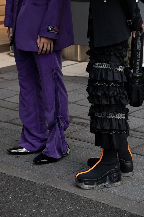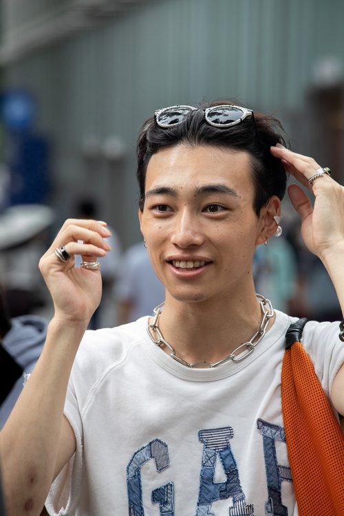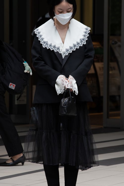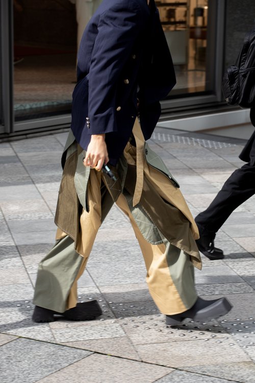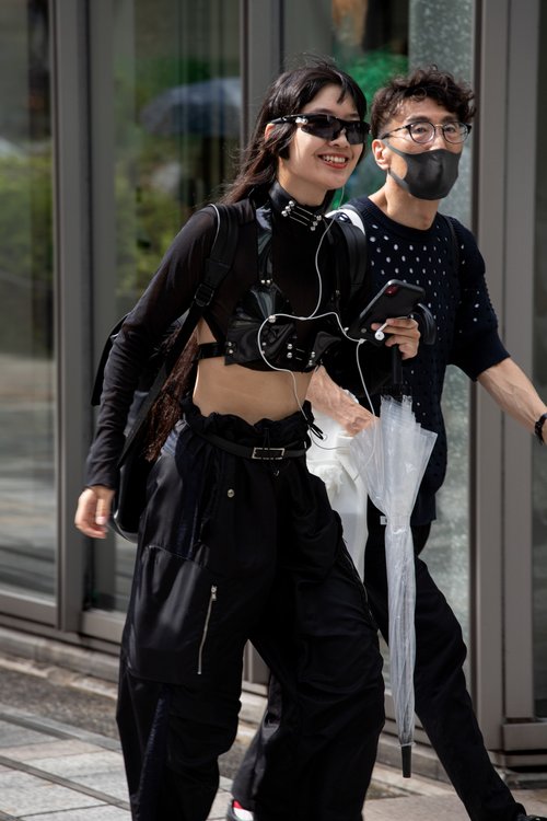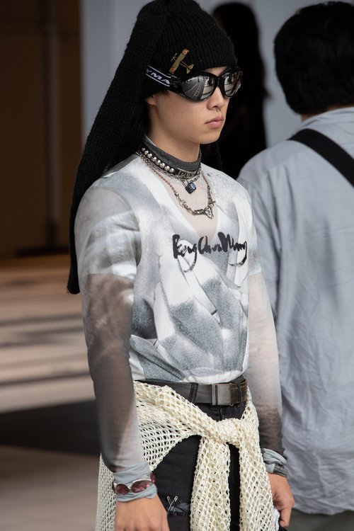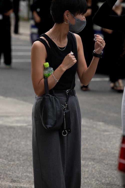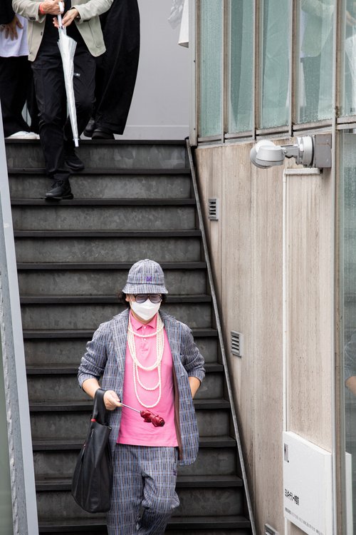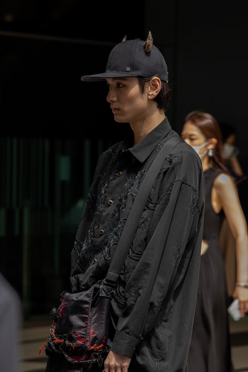 假如我们对比国内的话,能够很明显看到这次东京时装周的场外穿搭,虽然受到一些全球流行文化的影响,但每个人依然能够保持着自己的时尚思考。