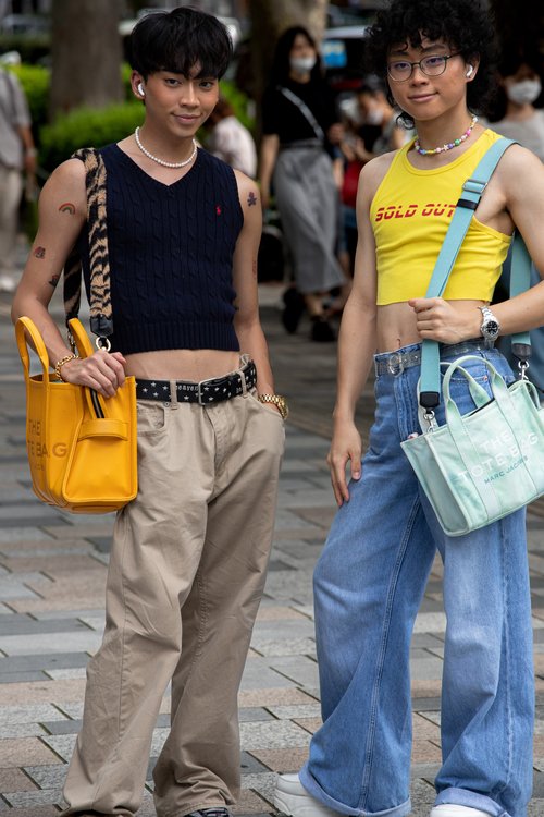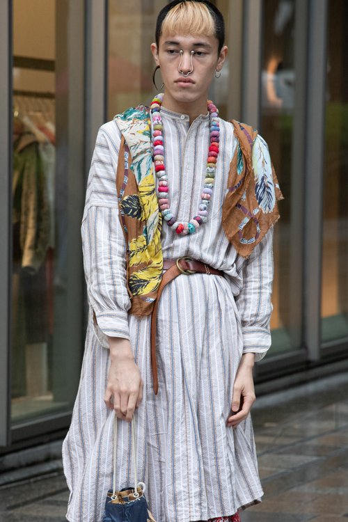 其次从风格来讲,几乎可以说是千人千面。即便看到几个我们熟悉的穿搭风格,但日本的时尚弄潮儿们,总会想尽办法通过一些细节的诠释。无论是配饰、包袋、发型、包袋等,营造出属于自己的风格状态,而不是去套公式。