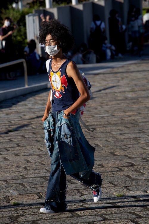 但这个话题,在东京仿佛并没有受到太大的影响,虽然穿着牛仔单品的人数相对在减少,但大家依然能够通过选品搭配以及 Remake 的方式,为牛仔单品赋予了潮流的新生。而并非我们传统认知中,牛仔单品仿佛就和阿美咔叽画上了等号。