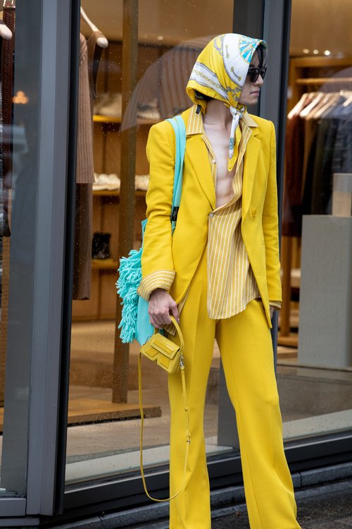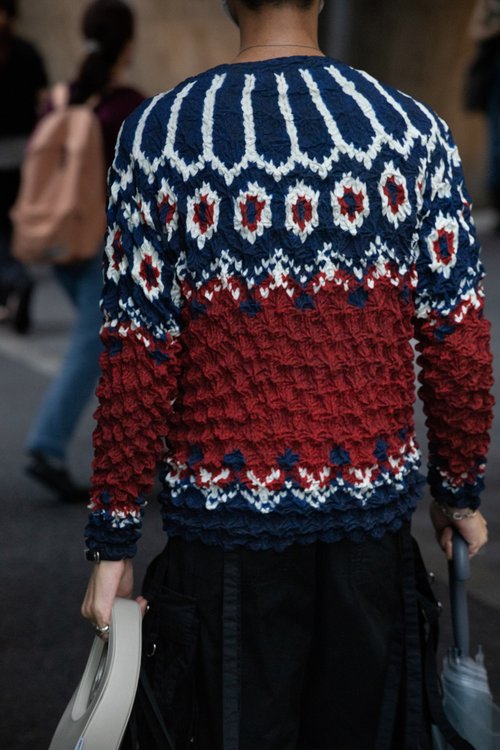 除此之外我们很少看到,有人穿着社交媒体上流行的热门单品或者品牌。此外随着针织类单品的流行,今年也成为了秀场之外大家的热门选择。