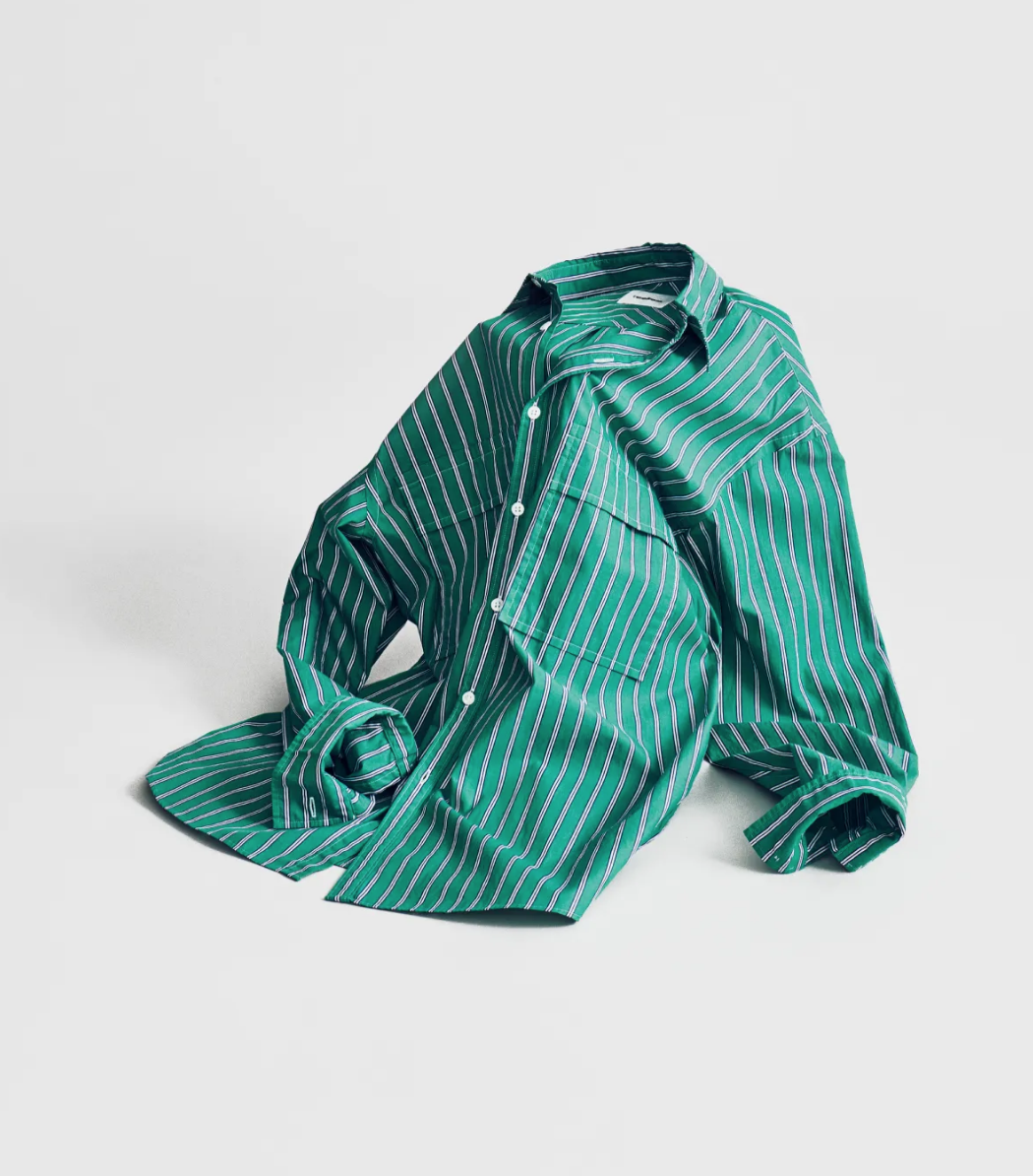 这款衬衫采用特殊材质的聚酯纤维制作而成,具有着类似亚麻的触感和速干透气性,而且比起亚麻要更好护理,几乎不用专门的熨烫且不易起球。造型方面建议可以稍微将下半部分收紧,这样更显腿长。