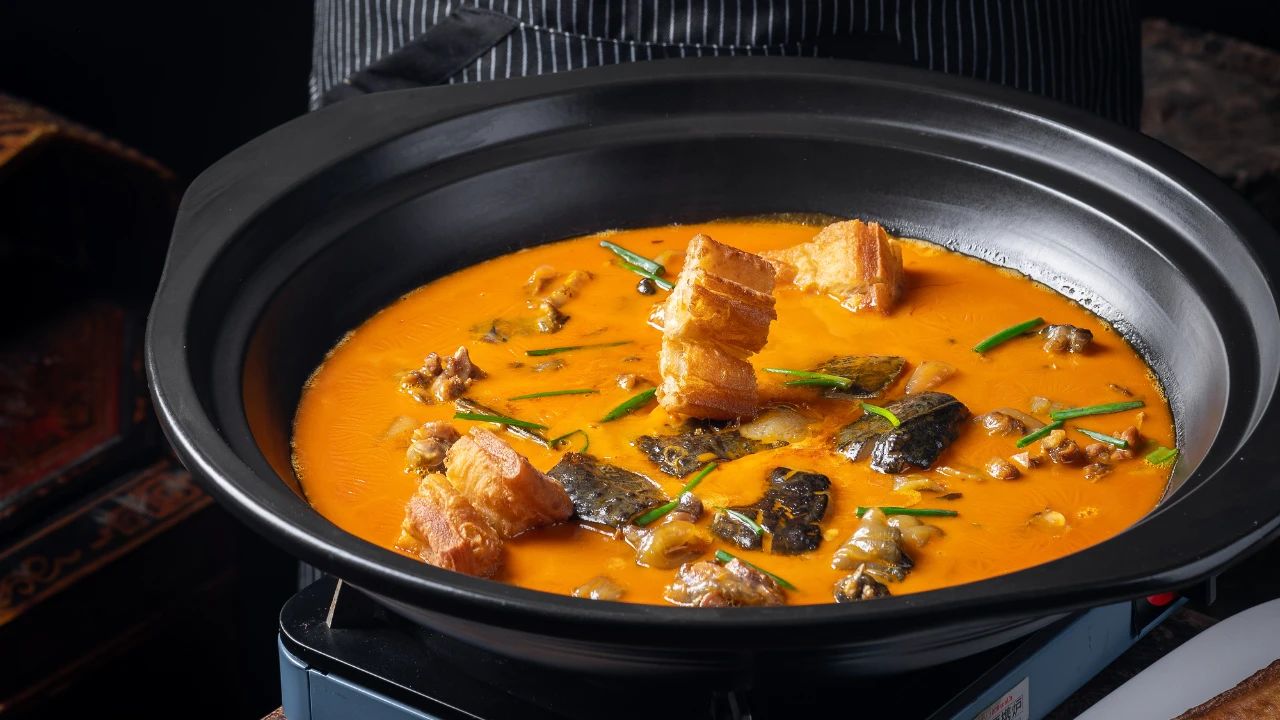 选用大湖生态甲鱼,运用江浙烧法处理,口感浓郁醇厚,汤汁咸鲜微辣,与酥脆的油条相得益彰。主厨在传统的甲鱼烧法基础上改良,让湖北的经典风味赢得更广泛的喜爱。