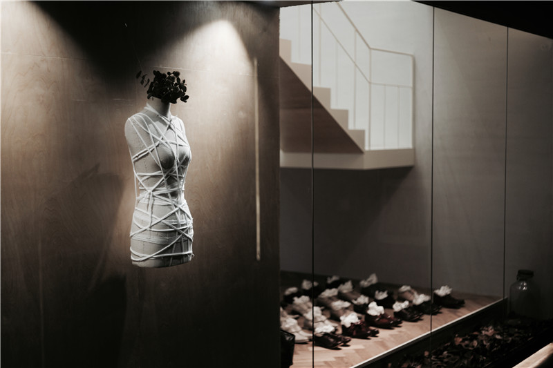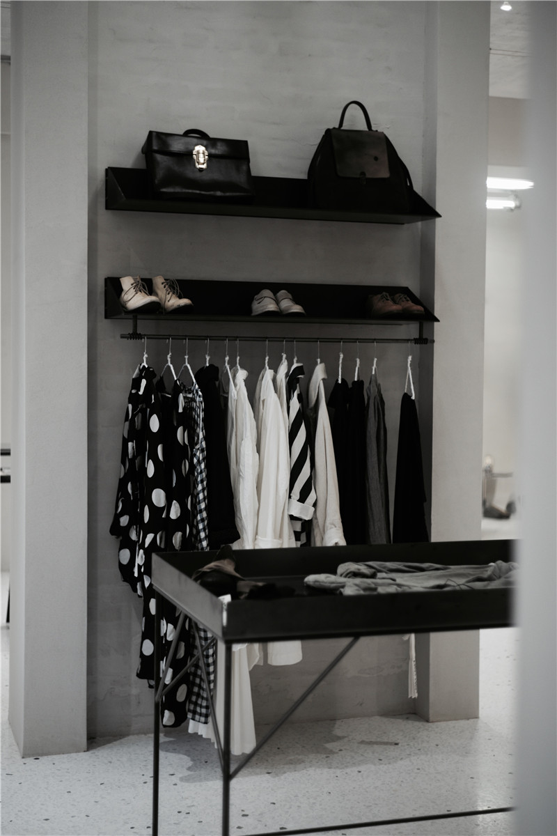 25 BOUTIQUE的服装是非常先锋的,所以我们在设计空间时,也尽量往艺术性上引导,业主希望空间适合进行不同主题的展览,所以在设计上我们希望空间尽量简洁以适合灵活陈列及布展的需求,这一次的设计也非常感谢25,店主是我们的好朋友也是非常有想法和创造力的人,我们负责梳理空间,而店主奇特且大胆的想法也使得空间的艺术性更为强烈。