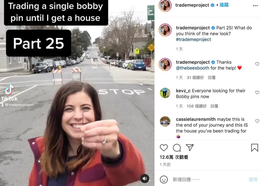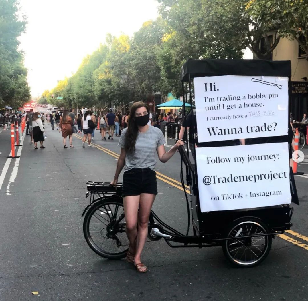 从 2020 年 5 月的「换物」项目开始,Demi 就没闲着。她分别在 TikTok 和 Instagram 上注册了名为 Trademeproject 的账号,用短视频记录自己的每次交易。
