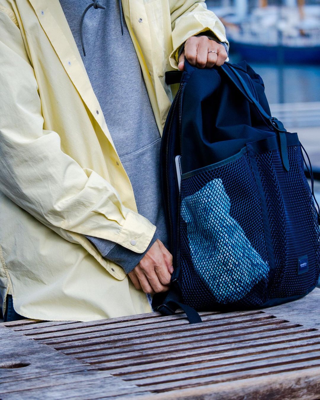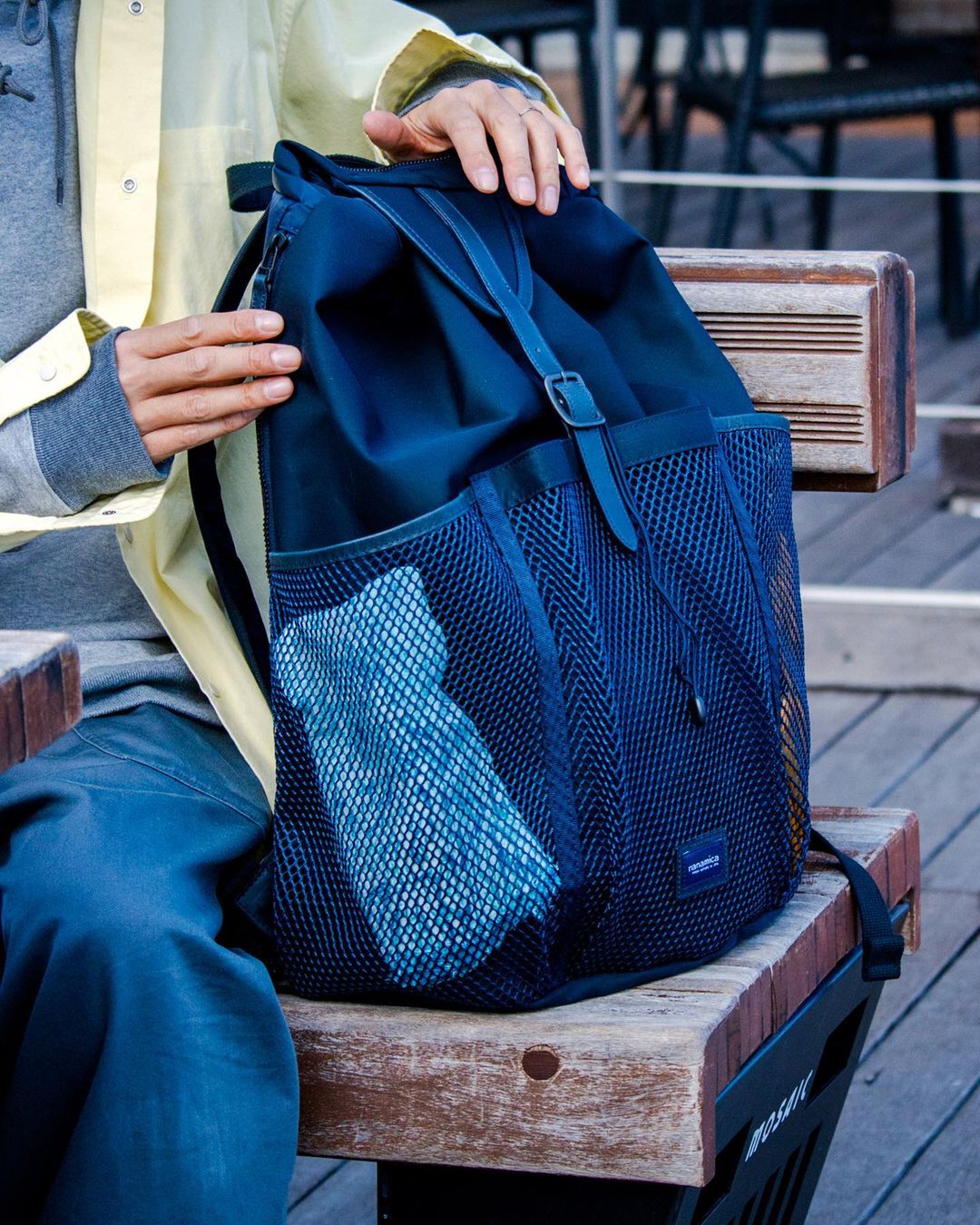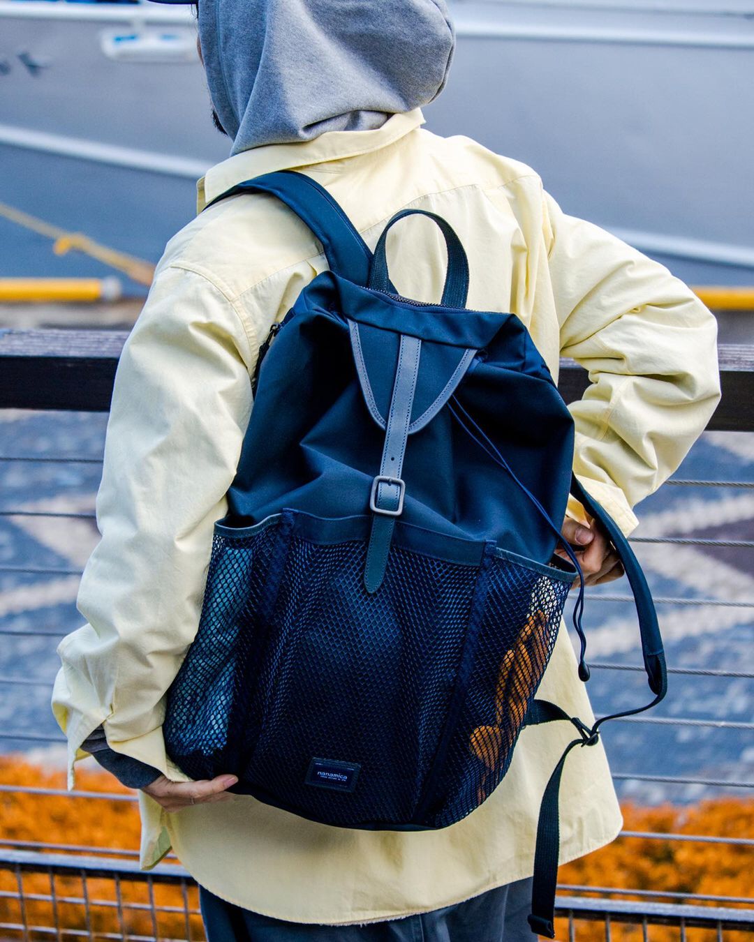 这款 nanamica 的背包通过超大的网状口袋设计,为传统经典包型融入了当下的时髦元素,搭配着皮革的高级质感可谓充满了优雅氛围。此外包身看似是常见的棉质帆布,但其实是一种特殊的复合材料,包含了防水、透气、尼龙3层结构。