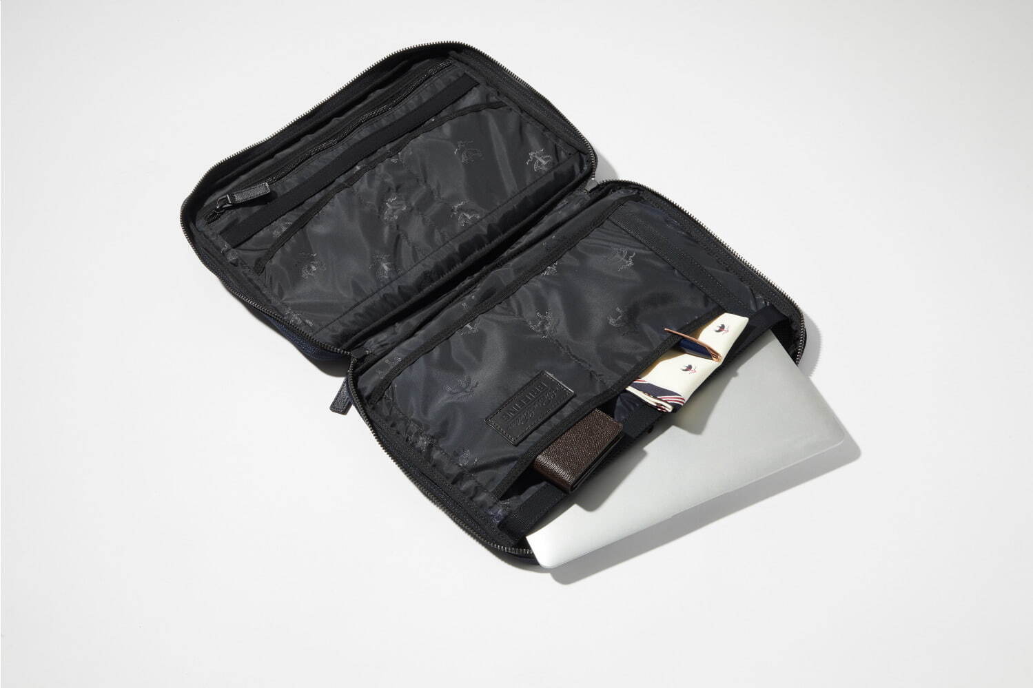 Brooks Brothers × BRIEFING 的合作让人非常惊喜,为军事风格包袋设计增添了更多的稳重感。整个系列从 BRIEFING 的 FUSION COLLECTION 中选择了三款基础包型,其中包含了三用包、公文包、手提包。并且采用尼龙和防水皮革等不同材质进行组合打造。