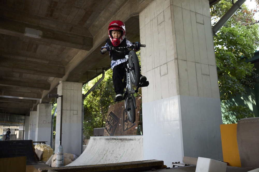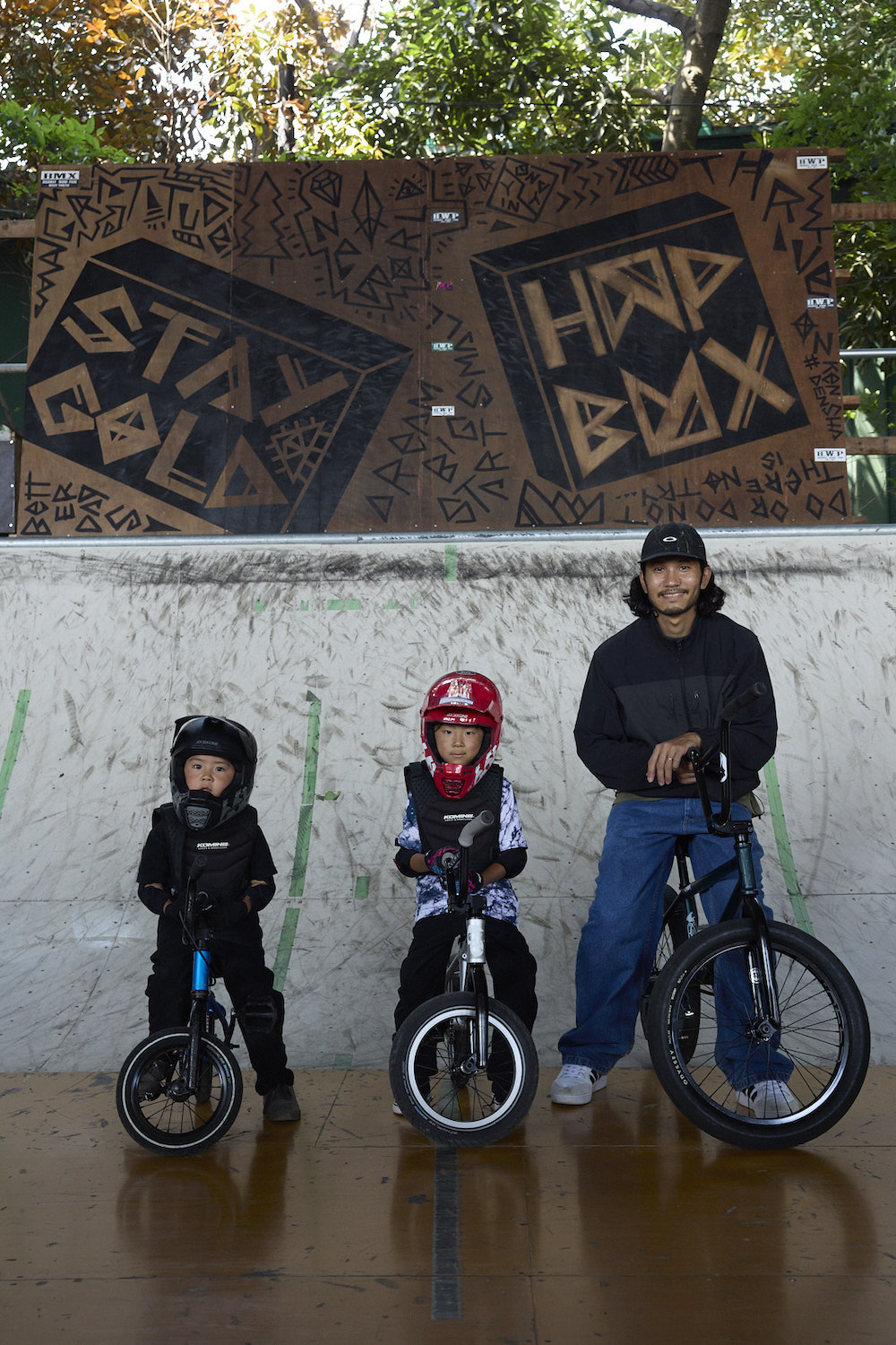 内山文宏可谓全家都是 BMX 的爱好者,两个孩子虽然只有7岁和5岁,但如今也是重度玩家。内山文宏之所以喜欢 BMX,是因为小时候觉得很帅,然后自己又热衷于街头文化,没想到如今又影响到了孩子。