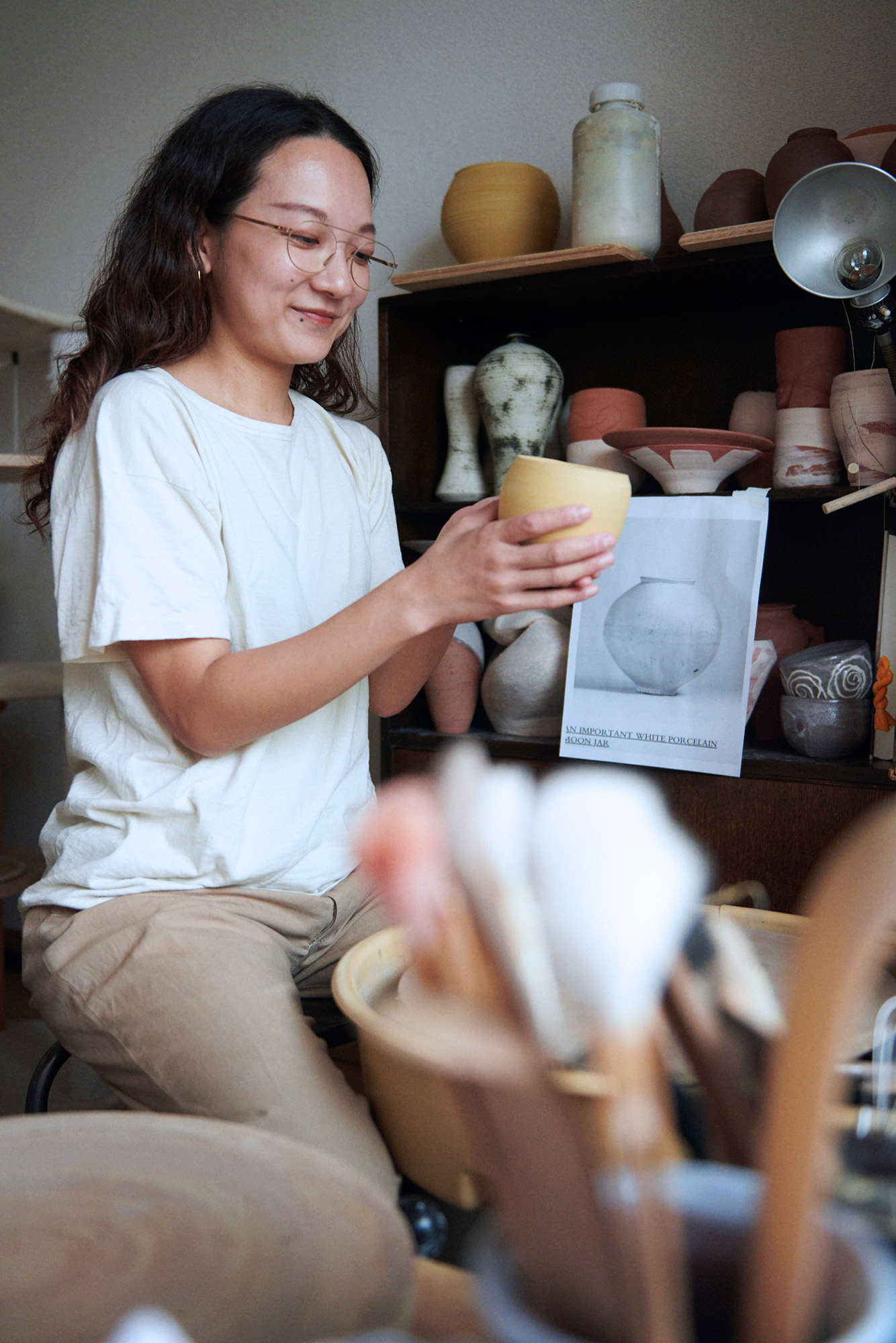 后来在逛欧洲各地跳蚤市场时,她发现了许多极具魅力的瓷器和陶器,便萌生了“自己或许也能做出来”的想法。毕竟她的家乡栃木县本就以益子烧陶器闻名,从小她也听过不少当地陶艺家的传奇故事。回到日本后,虽然她仍在一家美发沙龙工作,但对陶艺的热情与日俱增,随后决定报名学习陶艺相关课程。
