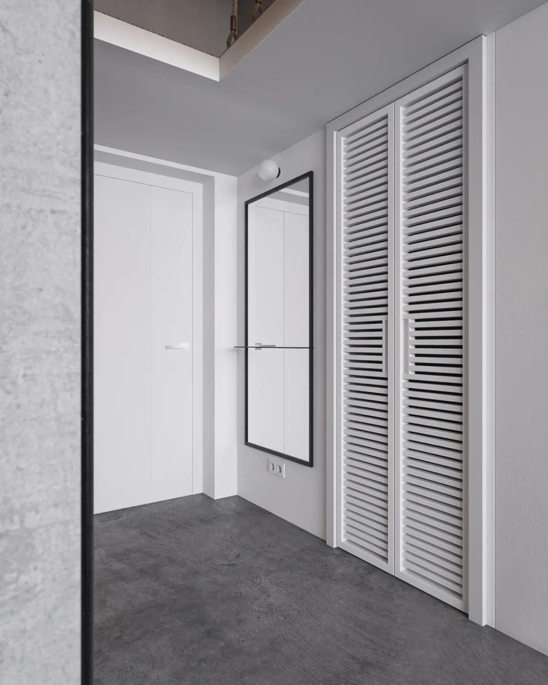 家中的入户位置 也设置了白色百叶窗门 更显清透自然