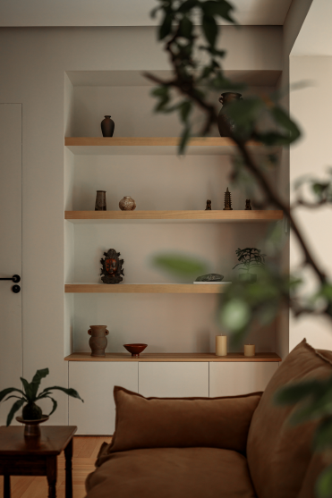 壁龛内的隔板,陈列着屋主一段段旅程记忆化作一道空间的风景线,赋予居住的温度。