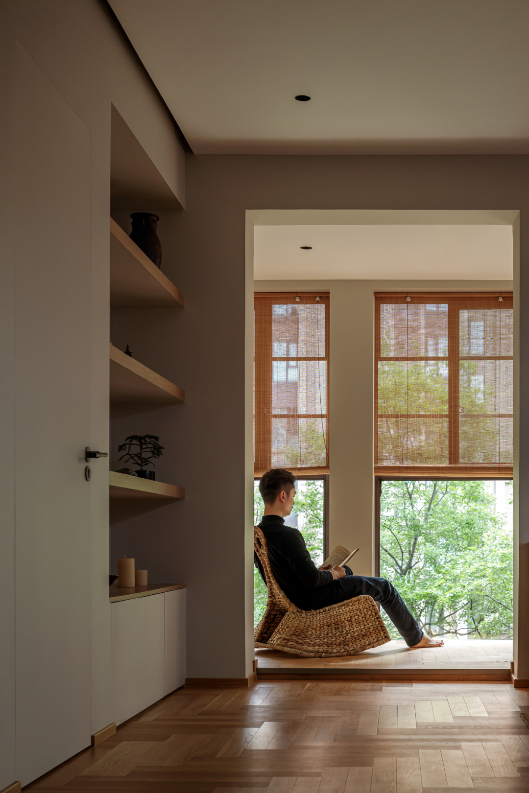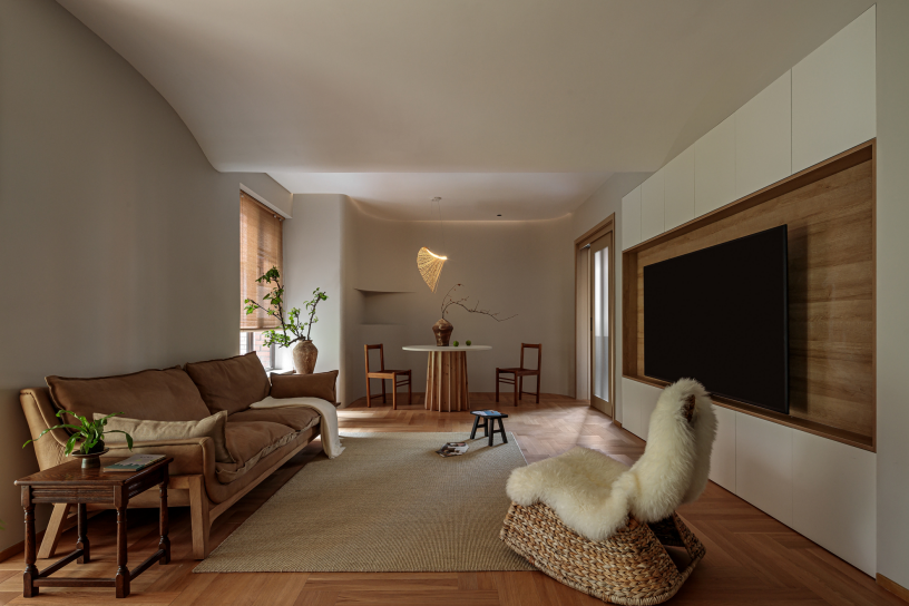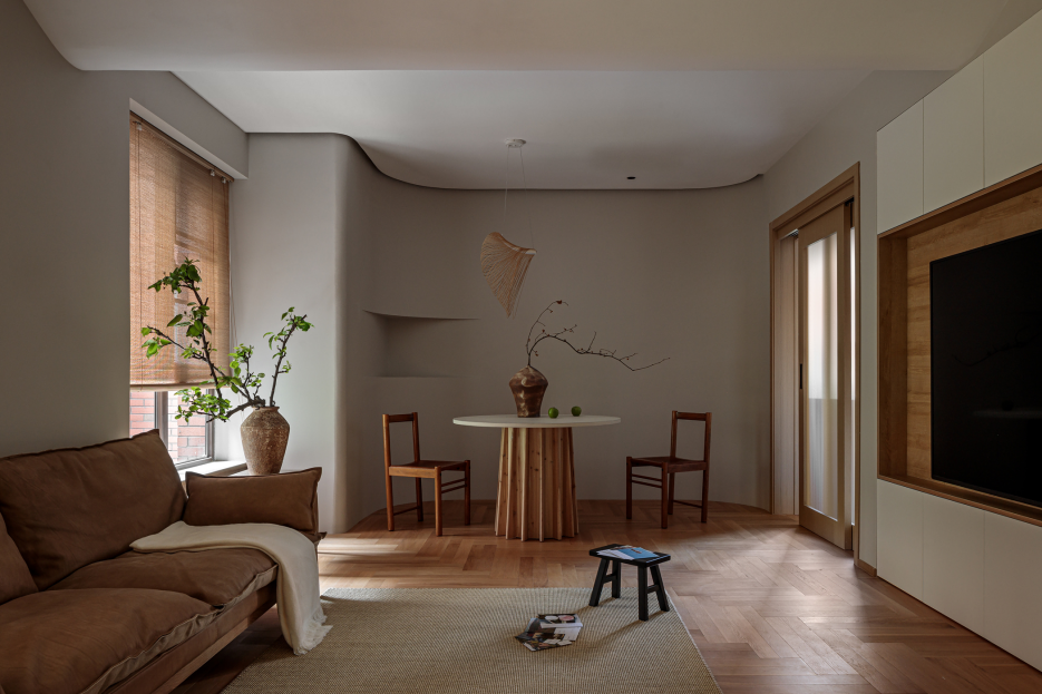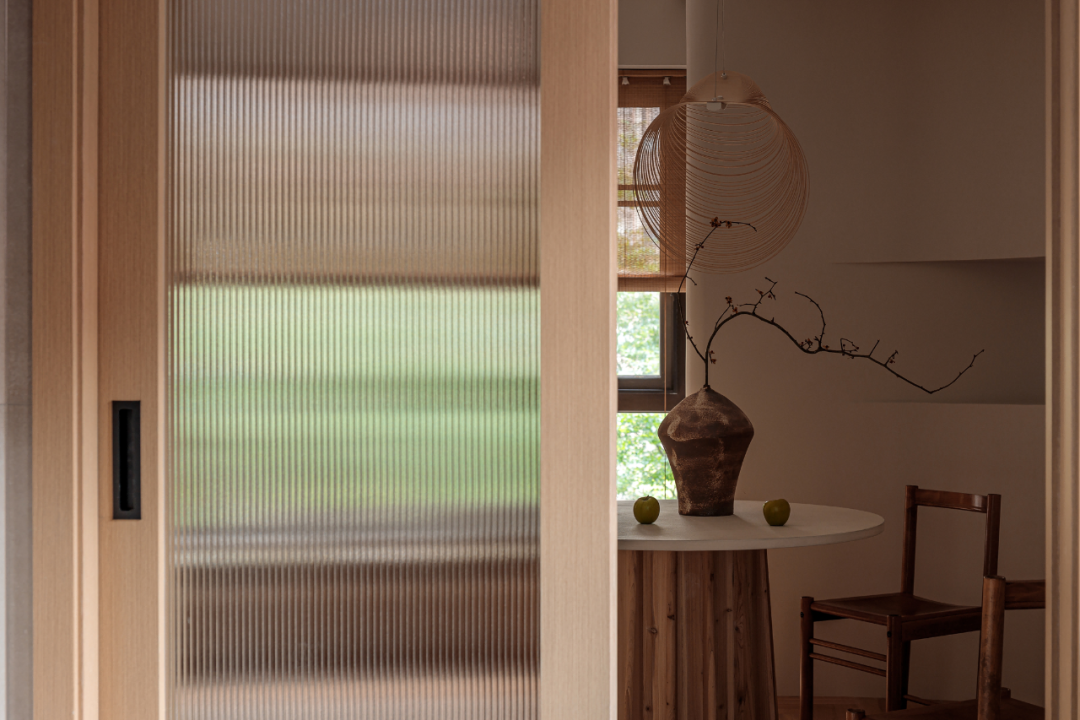 改造后,空间整体以雾色与自然木材为基调,结合建筑外部环境,实现内外空间的交互,足不出户也可享受四季变化带来的微妙体验。