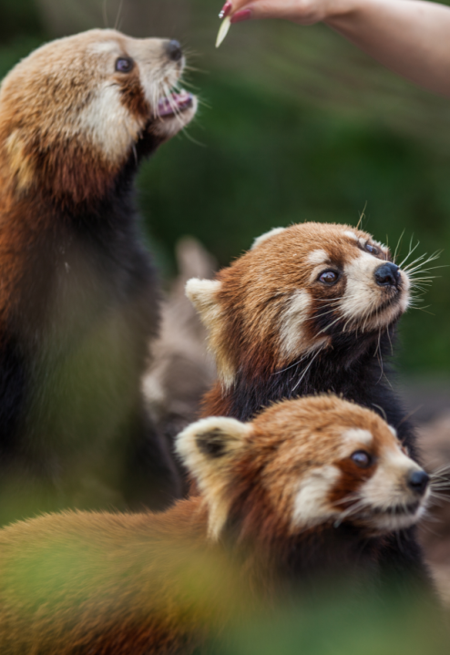 漫步林间,惊喜不断,随心出没的野生动物,治愈加倍。混圆的白犀牛在山谷中悠哉地晃荡;白颊长臂猿跳跃穿梭于古树间;湿地深处,白鹭、灰鹤、鱼鹰合演一出唯美大戏。甚至,你还可以把小熊猫抱在怀里喂食贴贴。小熊猫毛发蓬松,小小体格可爱得让人不忍放手。