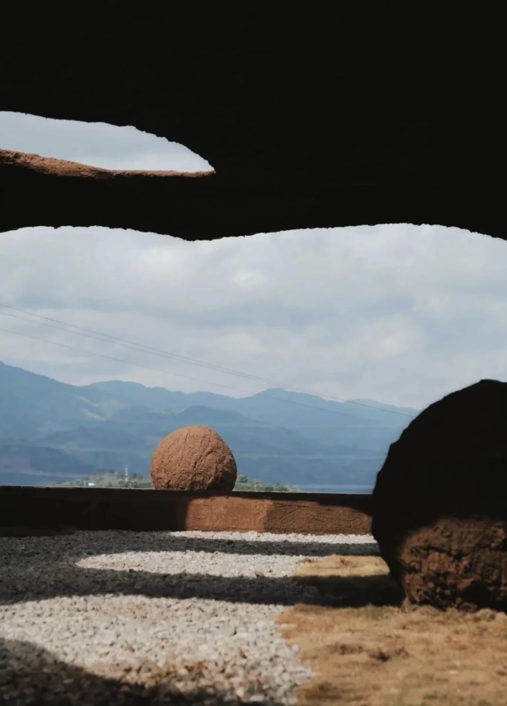 庄园有一处标志性的装置「冥想屋」,由漆艺非遗传承人设计,建造材料都来自咖啡渣及回收废料物,弧形空间、天然肌理、咖园眺望视角,极具艺术气息。无棱角的设计将人紧紧包裹其中,自然而然的温暖氛围,治愈了所有疲惫。