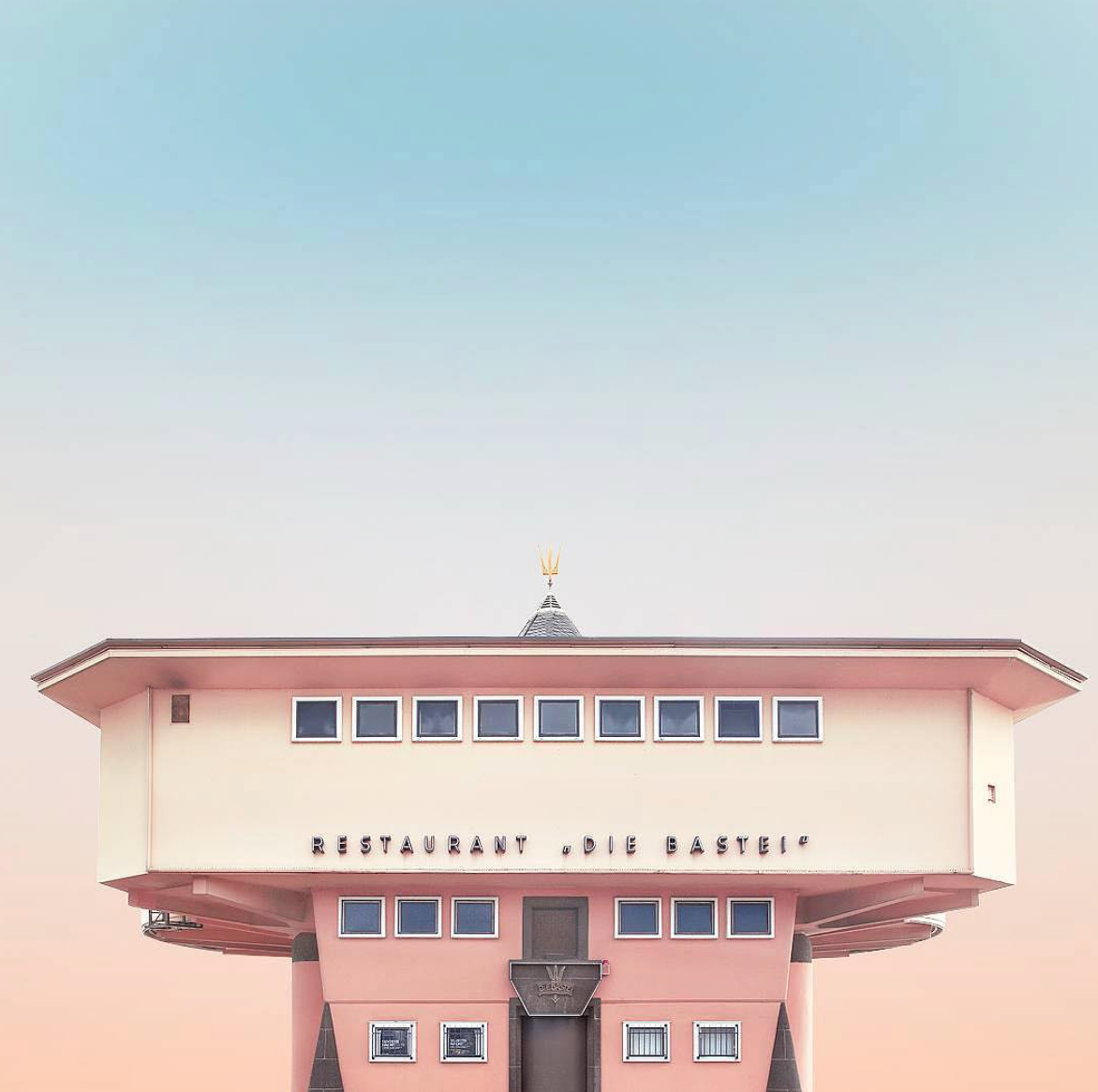 这些上传的作品也许是一个草莓果冻色的法式庭院、一个柠檬色的英国灯塔、一个新加坡的绿色地铁站、或是一个粉红色的自动扶梯,但这里每一个场景都有着Wes Anderson标志性的对称色彩美学。