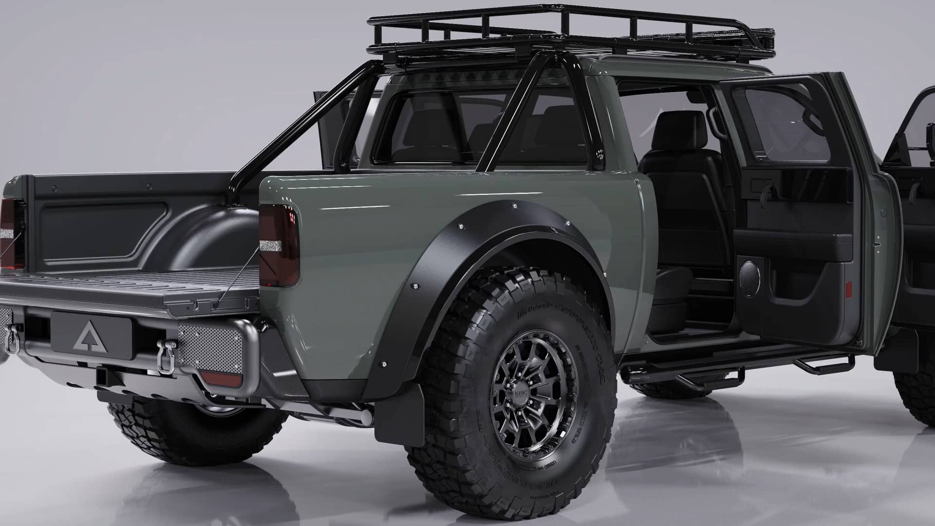 车辆使用 Wolf Plus 为基础打造四门双排座配置,尺寸为长 214.6 英寸、宽 78.5 英寸、高 69.3 英寸,动力方面则是搭载双电动马达和四轮驱动系统,但具体相关数据暂未公布,不过根据公布的资料来看百公里加速仅需 6.5 秒,续航里程约为 300 英里左右,车辆在外观设计方面极具硬派情怀,并且顾客可自由在 16、17 或 18 英吋轮框之间随意选择。