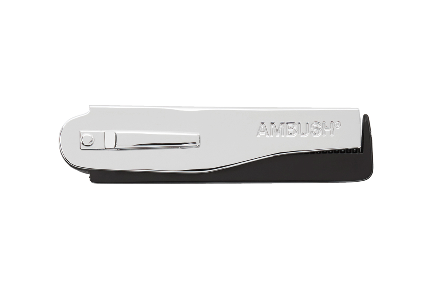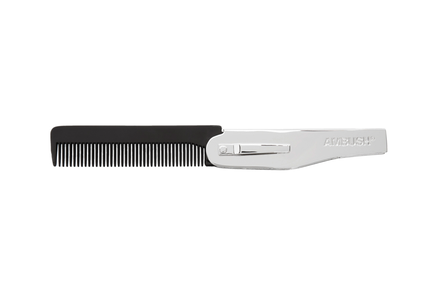 无疑,配件是AMBUSH 的强项,毕竟主理人夫妇此前有过成功运营珠宝品牌的经验。AMBUSH 的配饰一贯主打浓厚的实验性质,再加各色极富玩味感物料的辅佐,多少年来依旧风靡。此次这款AMBUSH Logo Comb ,基于满足个人基础理容需求而打造。这把小巧的可折叠梳子于日本制作,其黄铜材质塑造的手柄带有品牌的银色徽标,且配有用于固定的夹子。细齿梳部分由固态黑色乙酸酯制成,具备可靠的刚性结构。展开后,梳子的全长约为7.5 英寸。