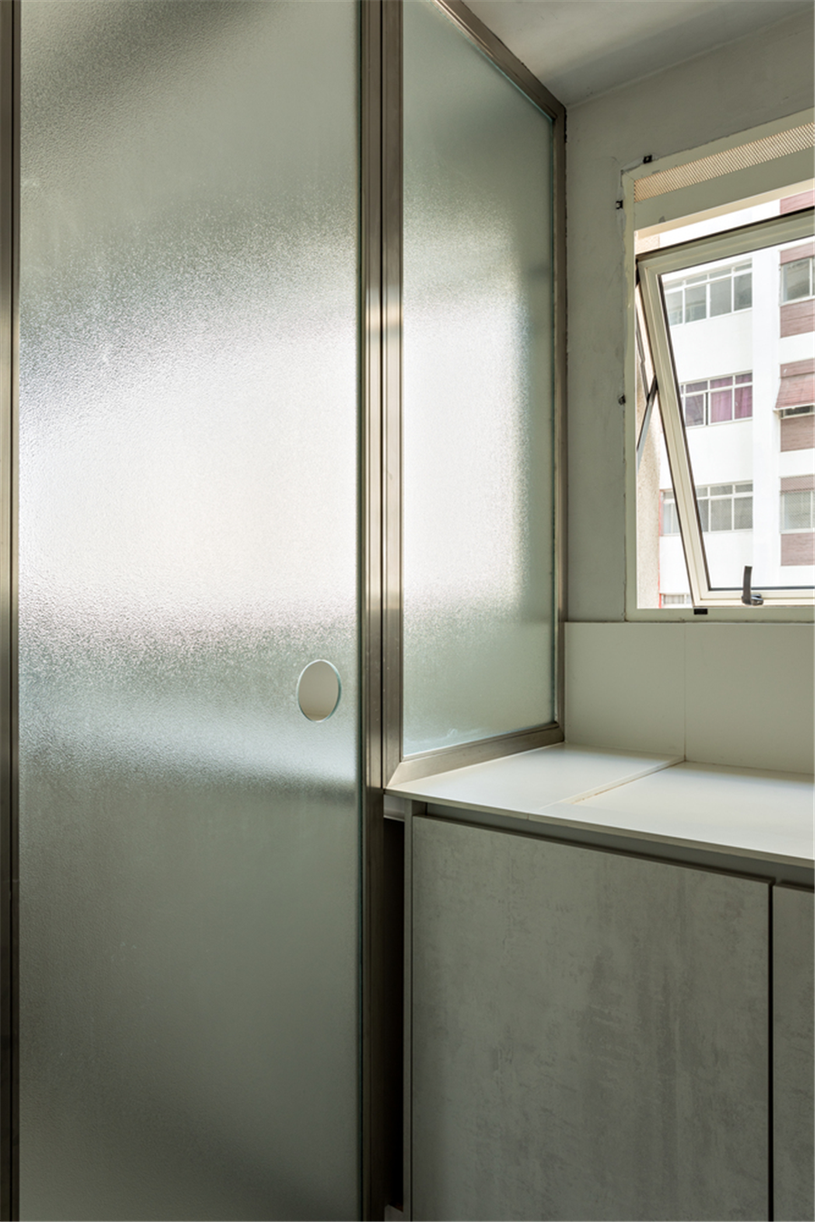 厨房内还连接着一个储物区利用玻璃门隔开两个区域,保证采光的同时又不影响美观。
