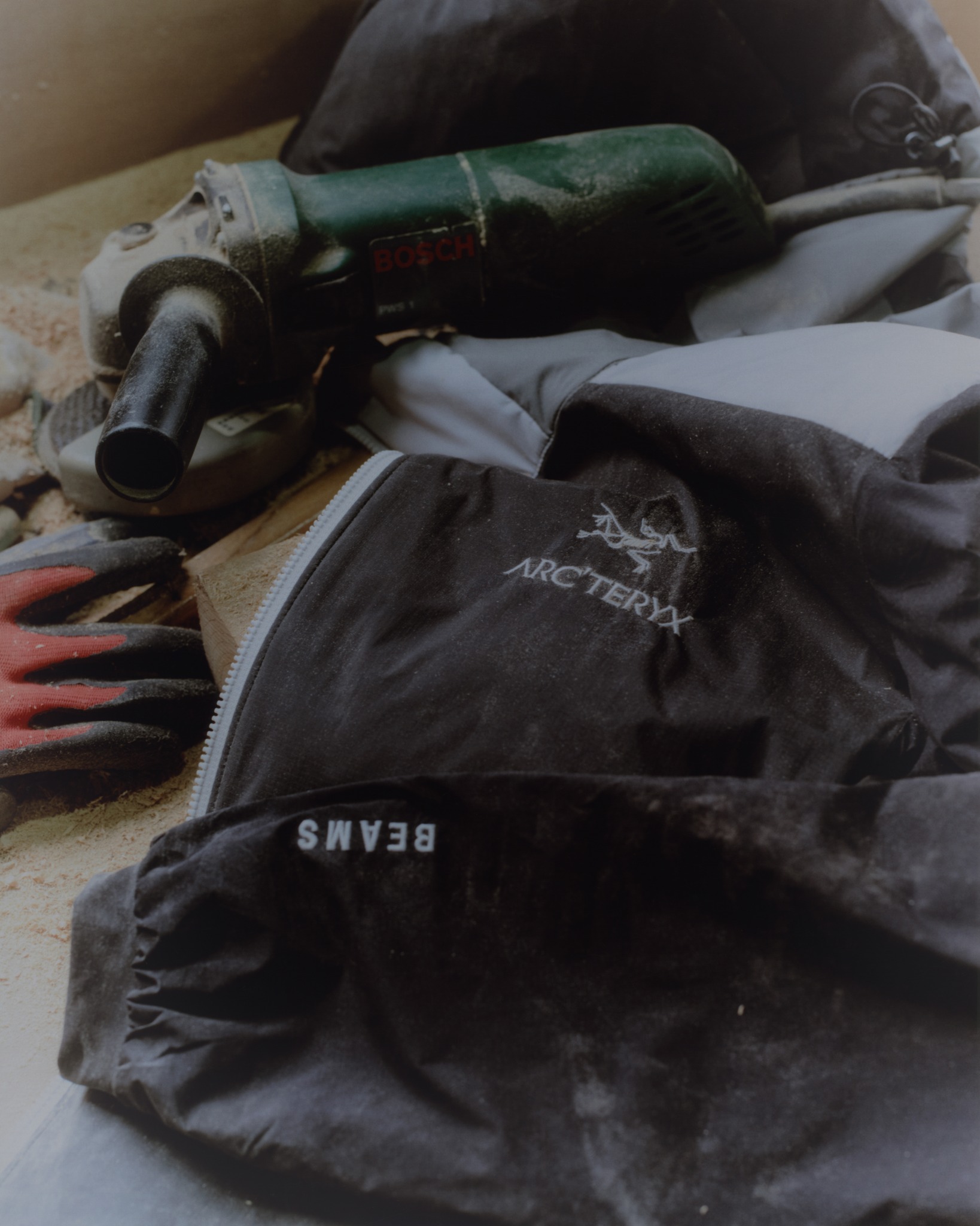 此次系列将“侘寂”这种理念融入其设计中。既所有事物都会随着时间的推移而消散,但要用积极的心态接受这一点并尝试享受它。受到侘寂这种表达日本独特的重视事物理念的词的启发,这次 ARC’TERYX 创造了一种独特的 TRANQUIL 色调,将单色融入到 BEAMS 独特的拼接设计中,打造出 4 种款式单品。此外,延续上次的主视觉效果,由世界级登山家、Arc'teryx Global 签约运动员 ASHIMA SHIRAISHI 担任主视觉设计。在一家制作攀岩支架的工作室中,ASHIMA SHIRAISHI 记录了他和他的登山同伴如何制作木制支架,并将作品转化为视觉效果,唤起工艺和侘寂感。