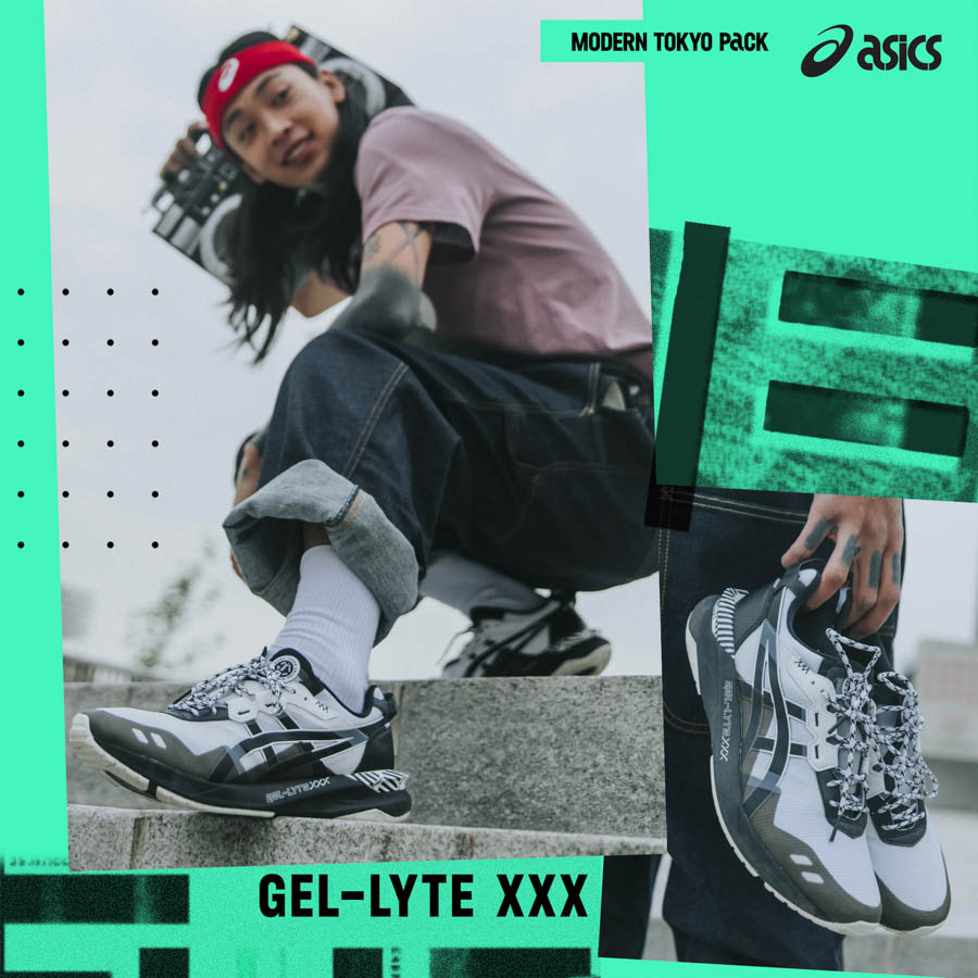 “摩登东京”系列将视角聚焦在日本流行中心——东京涩谷,将黑白分明的书法元素与涩谷街头十字路口图案相融合,带来古典与现代的碰撞。中底印有的“35.678333 139.714953”数字是东京奥运主场馆新国立竞技场的坐标,设计师透过种种精巧设计展示东京这座城市的现代与繁华,并记录体坛盛事的重要时刻。该系列不仅囊括经典复古跑鞋 GEL-LYTE III与GEL-KINSEI OG,更有全新推出的GEL-LYTE XXX助阵加盟,融合街头、创新、现代感等多种时尚元素于一体。