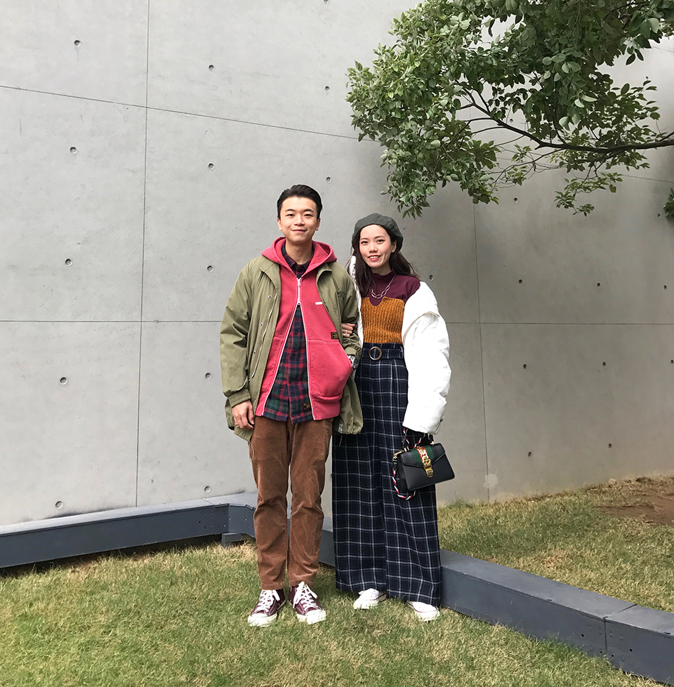 两人的着装风格,整体以简约舒适和色彩搭配为主,对于大家的日常穿搭非常有帮助。两人很喜欢日本,也经常去东京旅行。自然也对于穿衣服这件事认真起来,质感和造型感一样都不能少。孙先生喜欢一些偏日系的单品,wtaps、descendant都有穿,不过孙先生常常选择小logo或者偏素一点的单品,削弱了品牌的同时显得更加有内涵。步步则常穿一些高腰的裙装、裤装,不仅有拉长身体比例的效果,而且在情侣照中也会显得俏皮可爱。