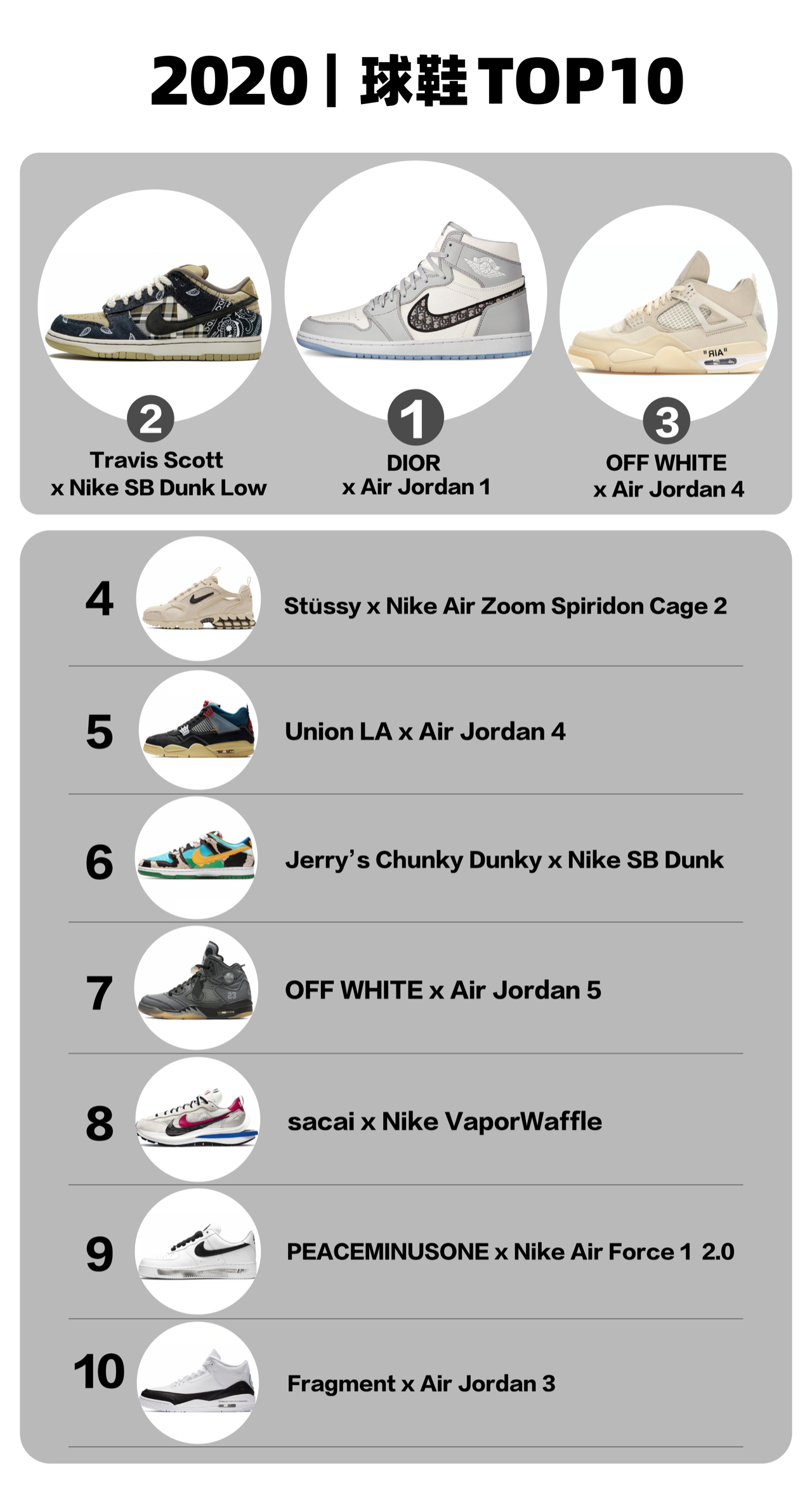 如果你对去年球市熟悉的话,这份 2021 Sneaker TOP10 榜单,应该争议不大,它几乎囊括了整一年最重要的联名款,也是大家关注度最高的球鞋。