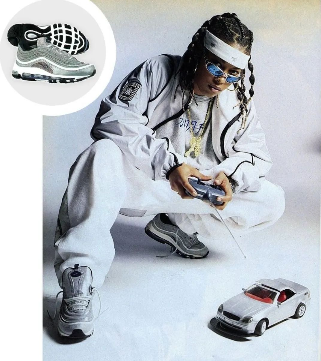 90 年代推出的 Air Max 90(增大增厚气垫)、95(分块式气垫单元)、97(全掌气垫形态),也都是当时流行的存在。